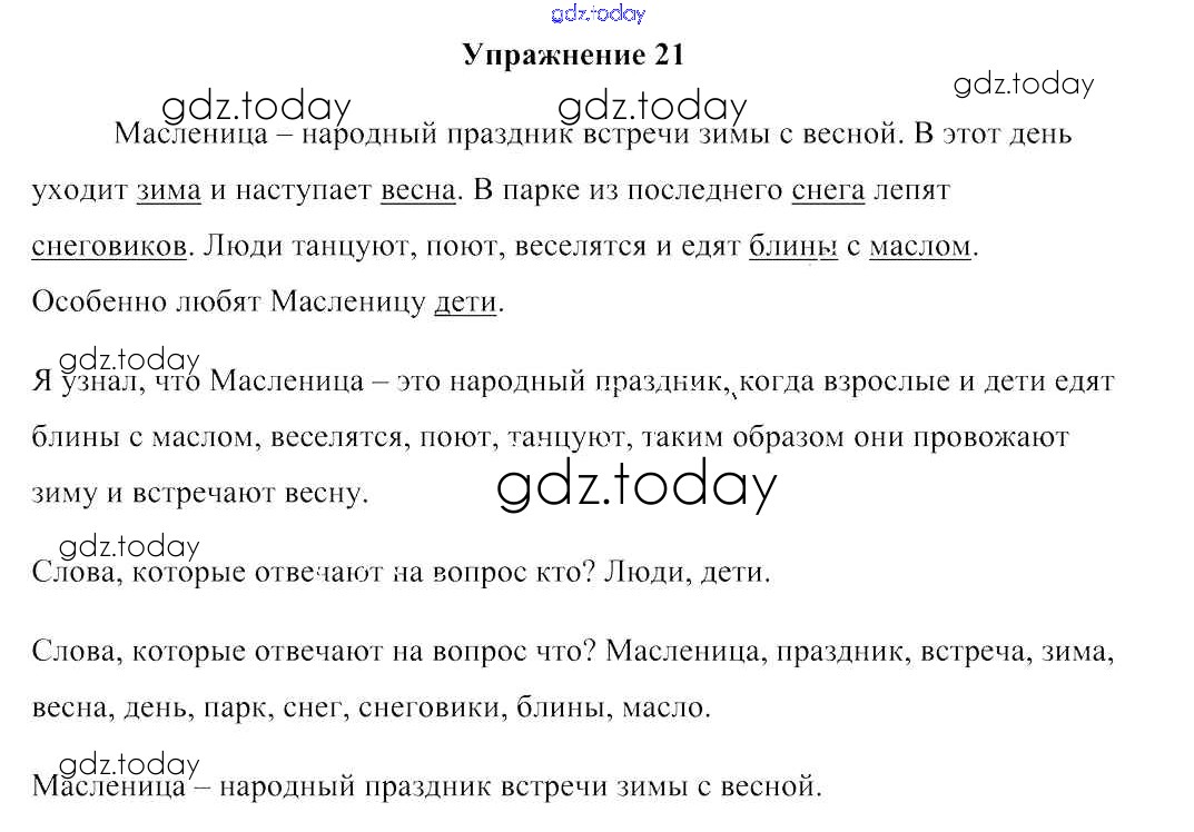 На страницах сайта gdz.today вы найдете учебный и вспомогательный материал, направленный на улучшения знаний школьной программы. ГДЗ - онлайн мир знаний Решение к части 2. Упражнения 21 Учебнику по Русскому языку для 2 класса Антипова, Верниковская Аверсэв 2019