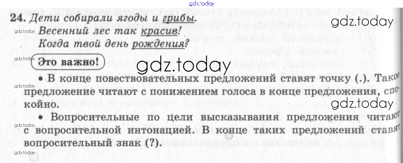 На страницах сайта gdz.today вы найдете учебный и вспомогательный материал, направленный на улучшения знаний школьной программы. ГДЗ - онлайн мир знаний Решение к упражнениям 24 Учебнику по Русскому языку для 2 класса Бунеев, Бунеева Баласс Школа 2100 2015