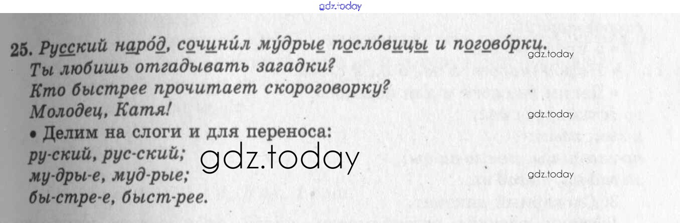 На страницах сайта gdz.today вы найдете учебный и вспомогательный материал, направленный на улучшения знаний школьной программы. ГДЗ - онлайн мир знаний Решение к упражнениям 25 Учебнику по Русскому языку для 2 класса Бунеев, Бунеева Баласс Школа 2100 2015