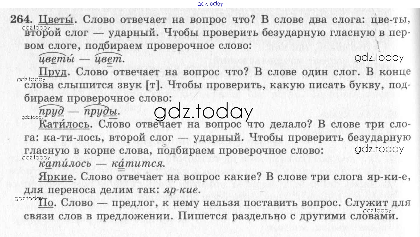 На страницах сайта gdz.today вы найдете учебный и вспомогательный материал, направленный на улучшения знаний школьной программы. ГДЗ - онлайн мир знаний Решение к упражнениям 264 Учебнику по Русскому языку для 2 класса Бунеев, Бунеева Баласс Школа 2100 2015