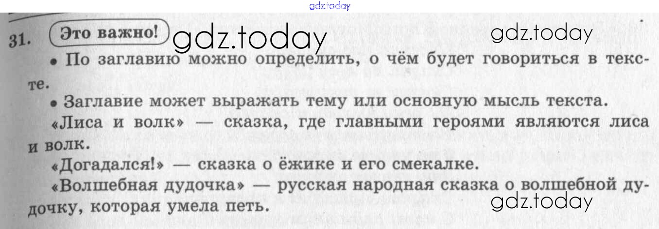На страницах сайта gdz.today вы найдете учебный и вспомогательный материал, направленный на улучшения знаний школьной программы. ГДЗ - онлайн мир знаний Решение к упражнениям 31 Учебнику по Русскому языку для 2 класса Бунеев, Бунеева Баласс Школа 2100 2015