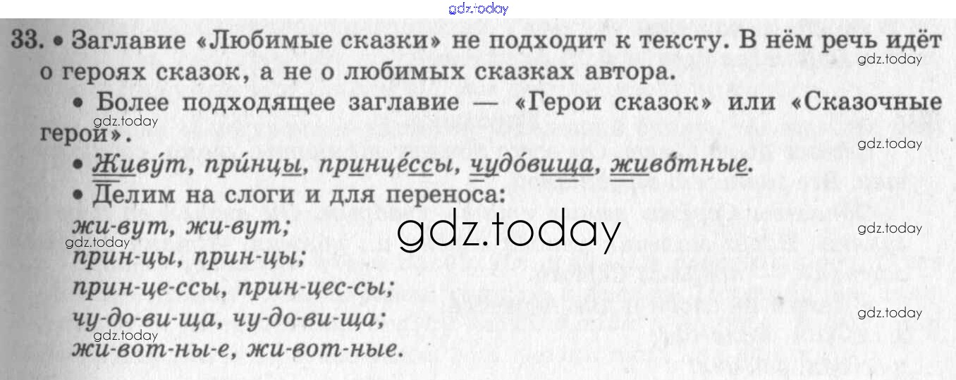 На страницах сайта gdz.today вы найдете учебный и вспомогательный материал, направленный на улучшения знаний школьной программы. ГДЗ - онлайн мир знаний Решение к упражнениям 33 Учебнику по Русскому языку для 2 класса Бунеев, Бунеева Баласс Школа 2100 2015