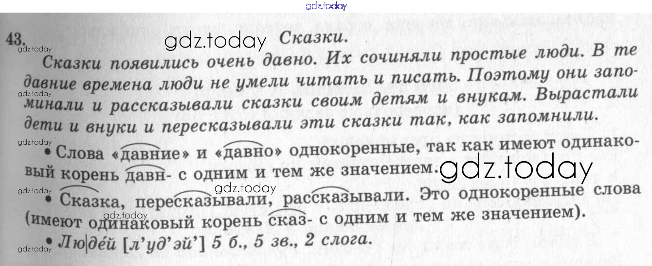 Ответы к Решение к упражнениям 43 Учебнику по Русскому языку для 2 класса Бунеев, Бунеева Баласс Школа 2100 2015