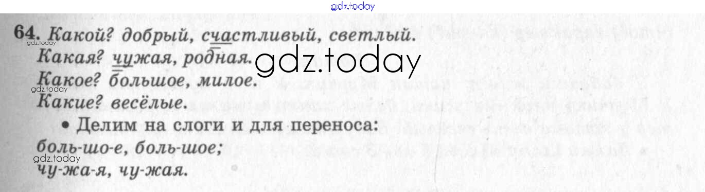 На страницах сайта gdz.today вы найдете учебный и вспомогательный материал, направленный на улучшения знаний школьной программы. ГДЗ - онлайн мир знаний Решение к упражнениям 64 Учебнику по Русскому языку для 2 класса Бунеев, Бунеева Баласс Школа 2100 2015