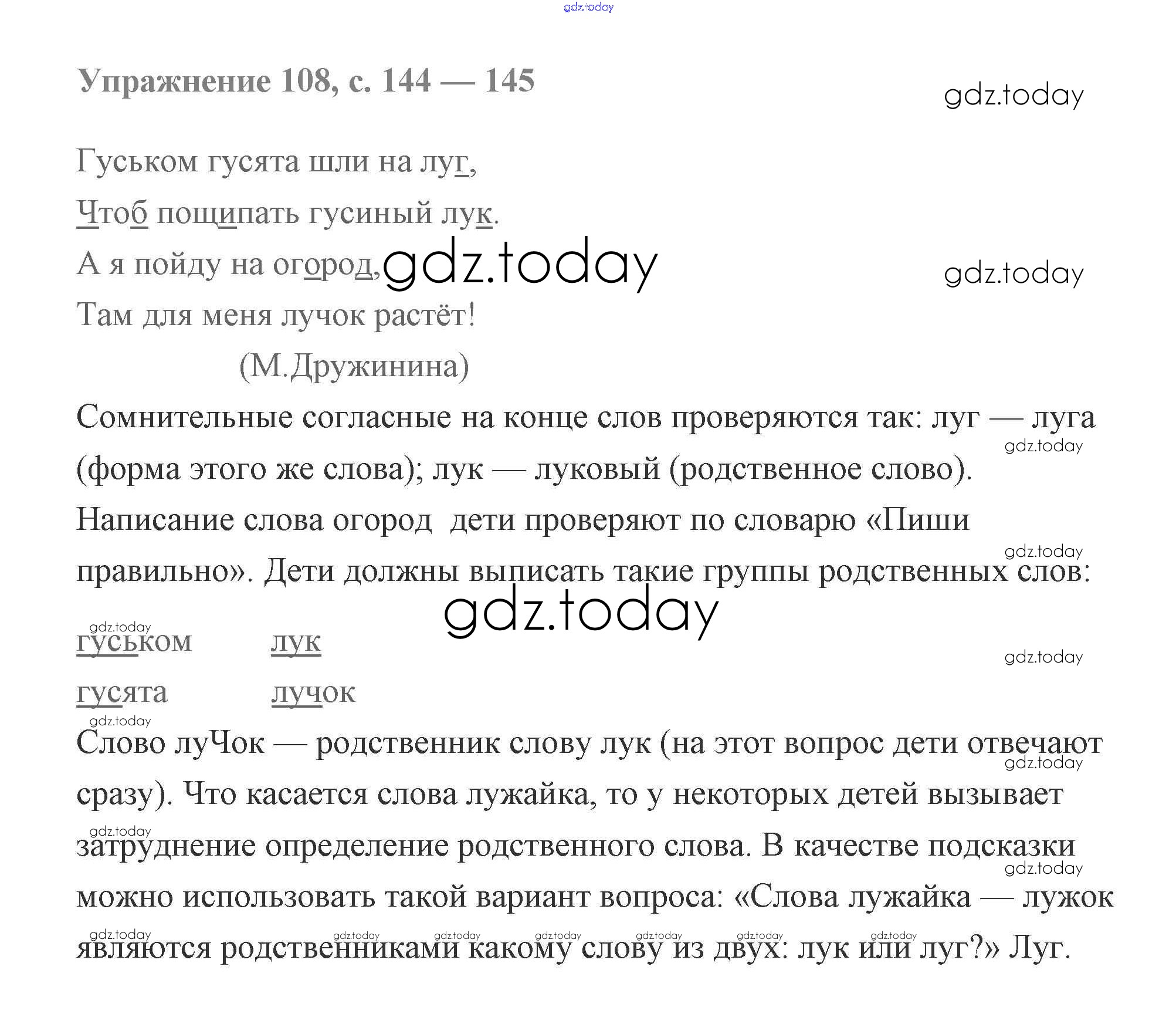 Ответы к Решение к части 1 (Упражнения) 108 Учебнику по Русскому языку для 2 класса Чуракова Академкнига Перспективная начальная школа 2016