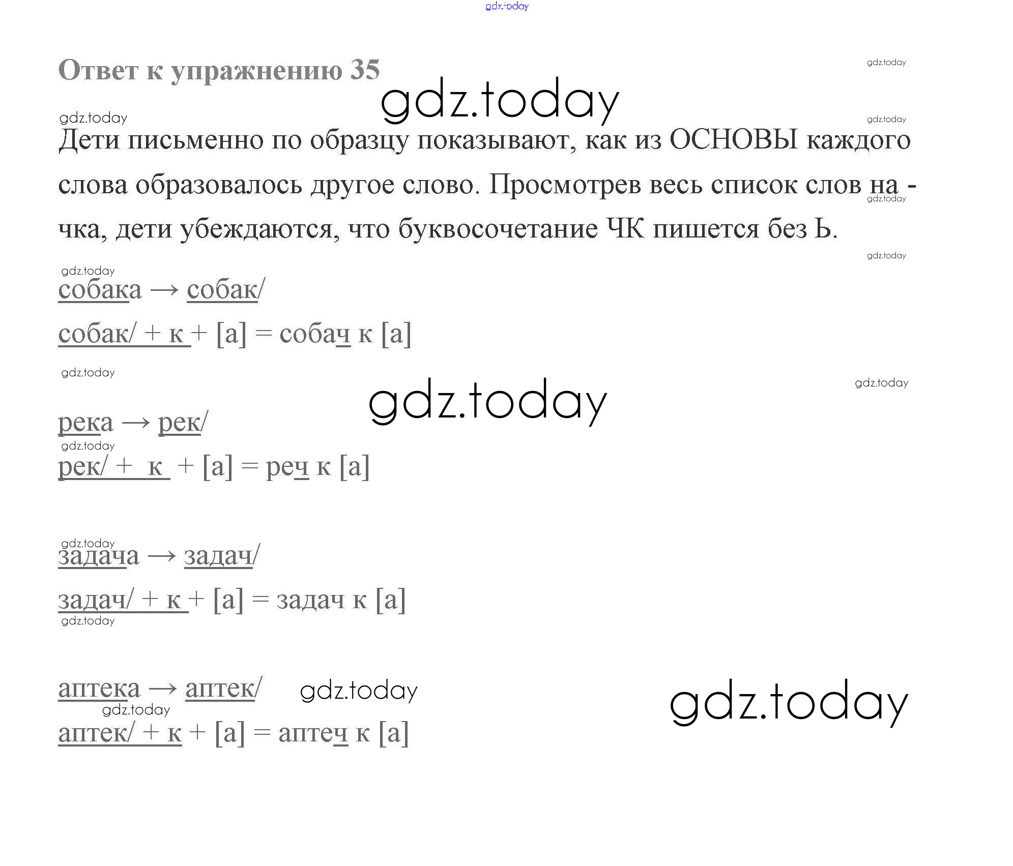 На страницах сайта gdz.today вы найдете учебный и вспомогательный материал, направленный на улучшения знаний школьной программы. ГДЗ - онлайн мир знаний Решение к части 3 (Упражнения) 35 Учебнику по Русскому языку для 2 класса Чуракова Академкнига Перспективная начальная школа 2016
