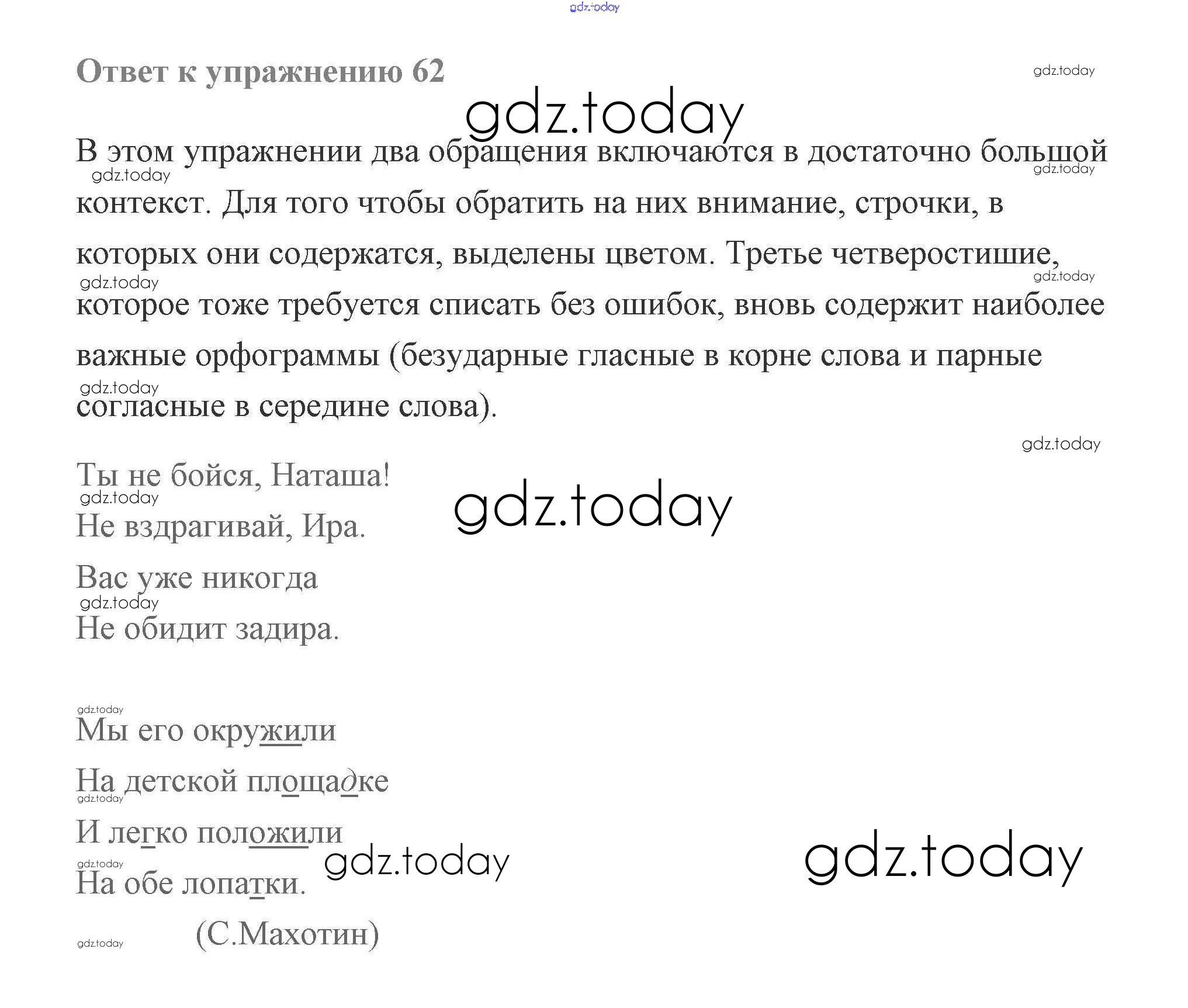 На страницах сайта gdz.today вы найдете учебный и вспомогательный материал, направленный на улучшения знаний школьной программы. ГДЗ - онлайн мир знаний Решение к части 3 (Упражнения) 62 Учебнику по Русскому языку для 2 класса Чуракова Академкнига Перспективная начальная школа 2016