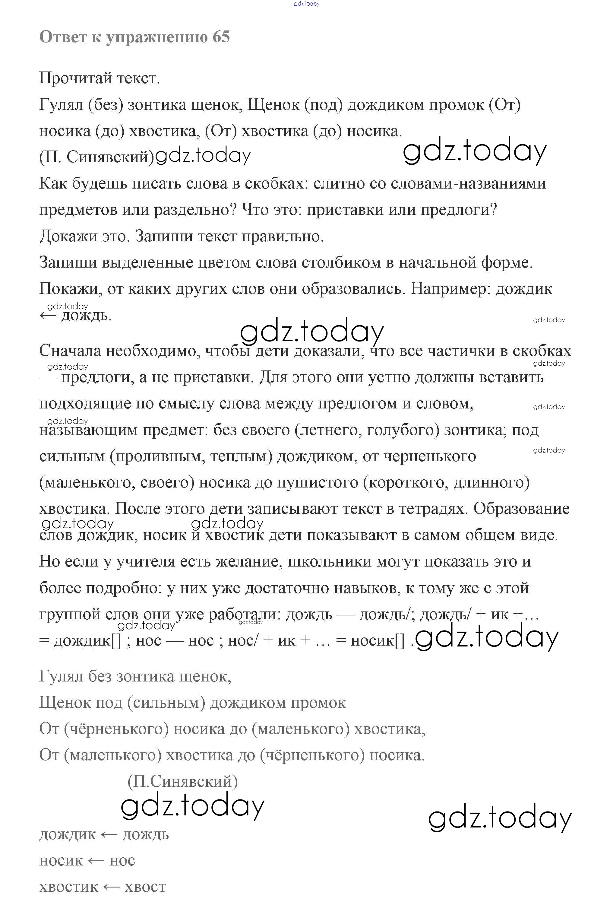 На страницах сайта gdz.today вы найдете учебный и вспомогательный материал, направленный на улучшения знаний школьной программы. ГДЗ - онлайн мир знаний Решение к части 3 (Упражнения) 65 Учебнику по Русскому языку для 2 класса Чуракова Академкнига Перспективная начальная школа 2016