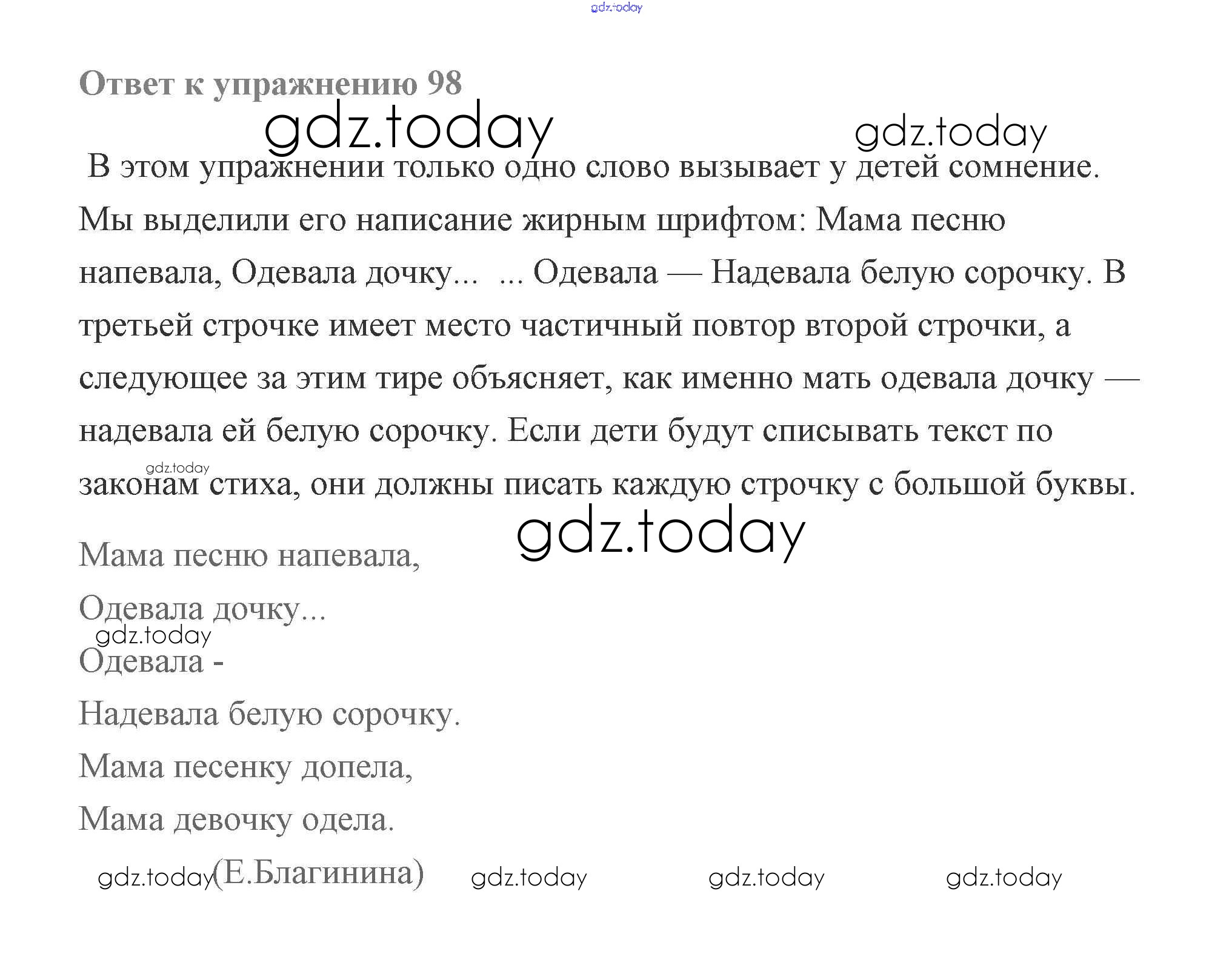 Ответы к Решение к части 3 (Упражнения) 98 Учебнику по Русскому языку для 2 класса Чуракова Академкнига Перспективная начальная школа 2016