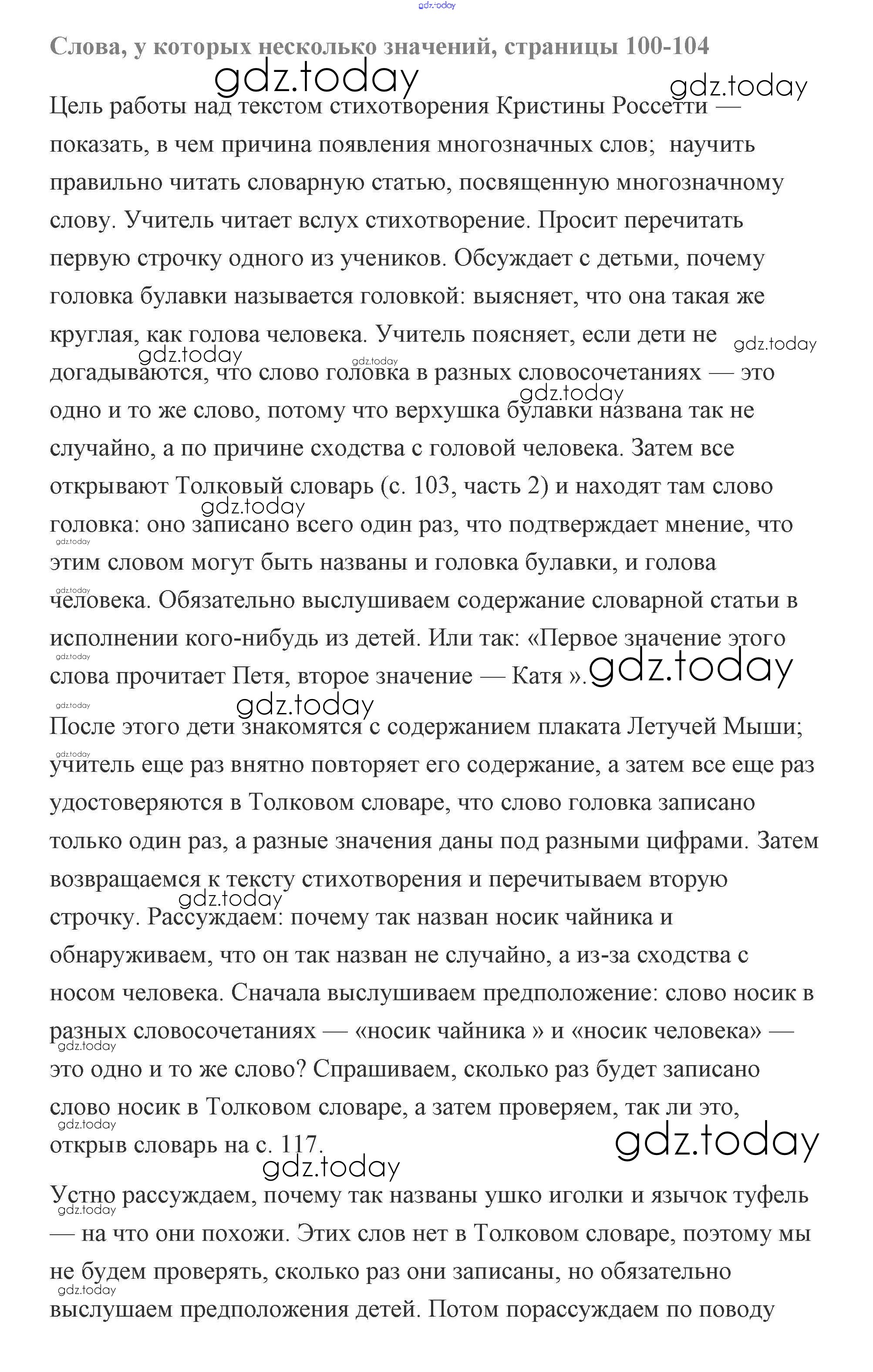 Ответы к Слова у которых несколько значений (решение) стр.100 Учебнику по Русскому языку для 2 класса Чуракова Академкнига Перспективная начальная школа 2016