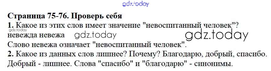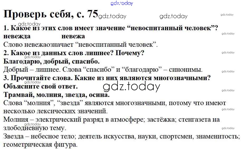 На страницах сайта gdz.today вы найдете учебный и вспомогательный материал, направленный на улучшения знаний школьной программы. ГДЗ - онлайн мир знаний Проверь себя Решение к части №1 (Упражнения) стр. 75 Учебнику по Русскому языку для 2 класса Канакина, Горецкий Просвещение Школа России 2013