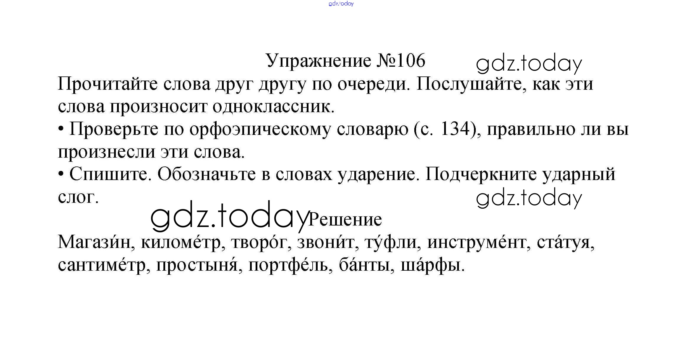 На страницах сайта gdz.today вы найдете учебный и вспомогательный материал, направленный на улучшения знаний школьной программы. ГДЗ - онлайн мир знаний Решение к части №1 (Упражнения) 106 Учебнику по Русскому языку для 2 класса Канакина, Горецкий Просвещение Школа России 2013