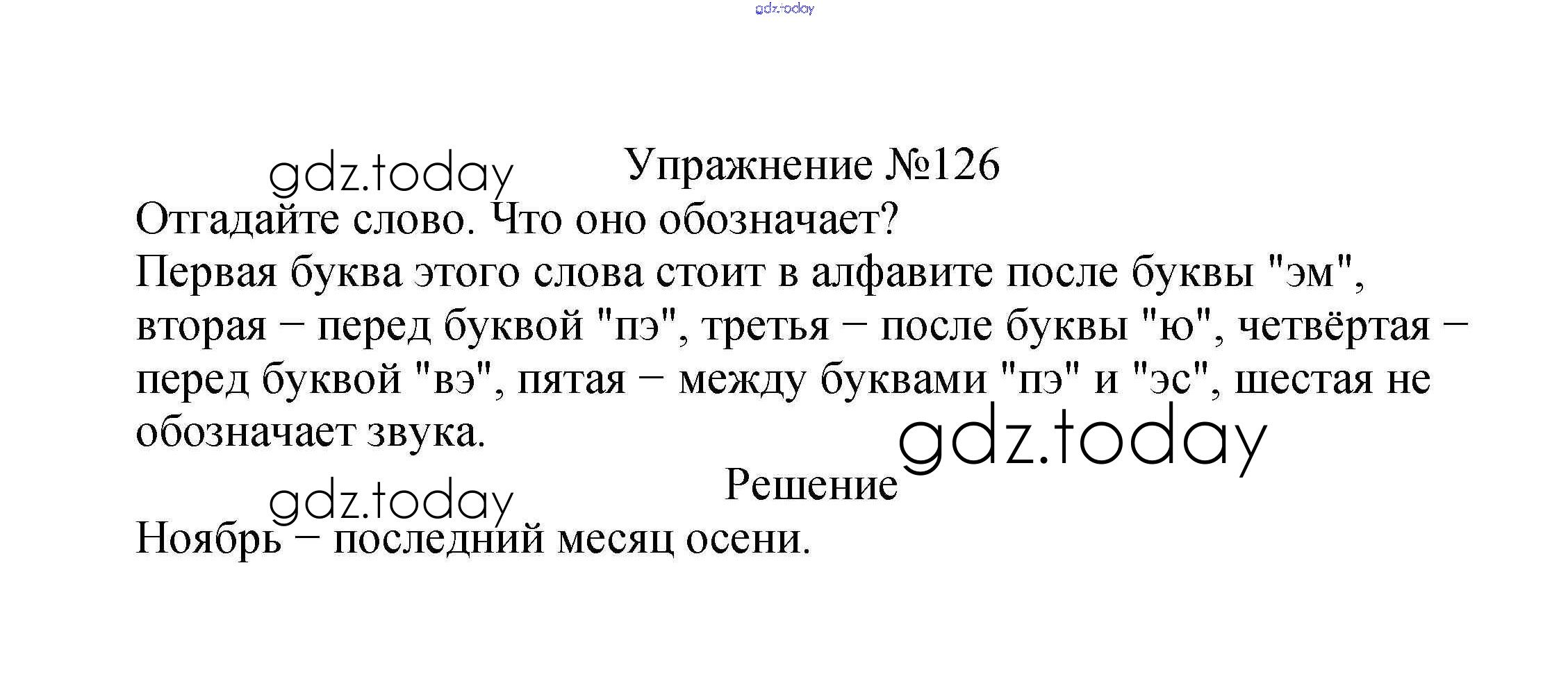 На страницах сайта gdz.today вы найдете учебный и вспомогательный материал, направленный на улучшения знаний школьной программы. ГДЗ - онлайн мир знаний Решение к части №1 (Упражнения) 126 Учебнику по Русскому языку для 2 класса Канакина, Горецкий Просвещение Школа России 2013