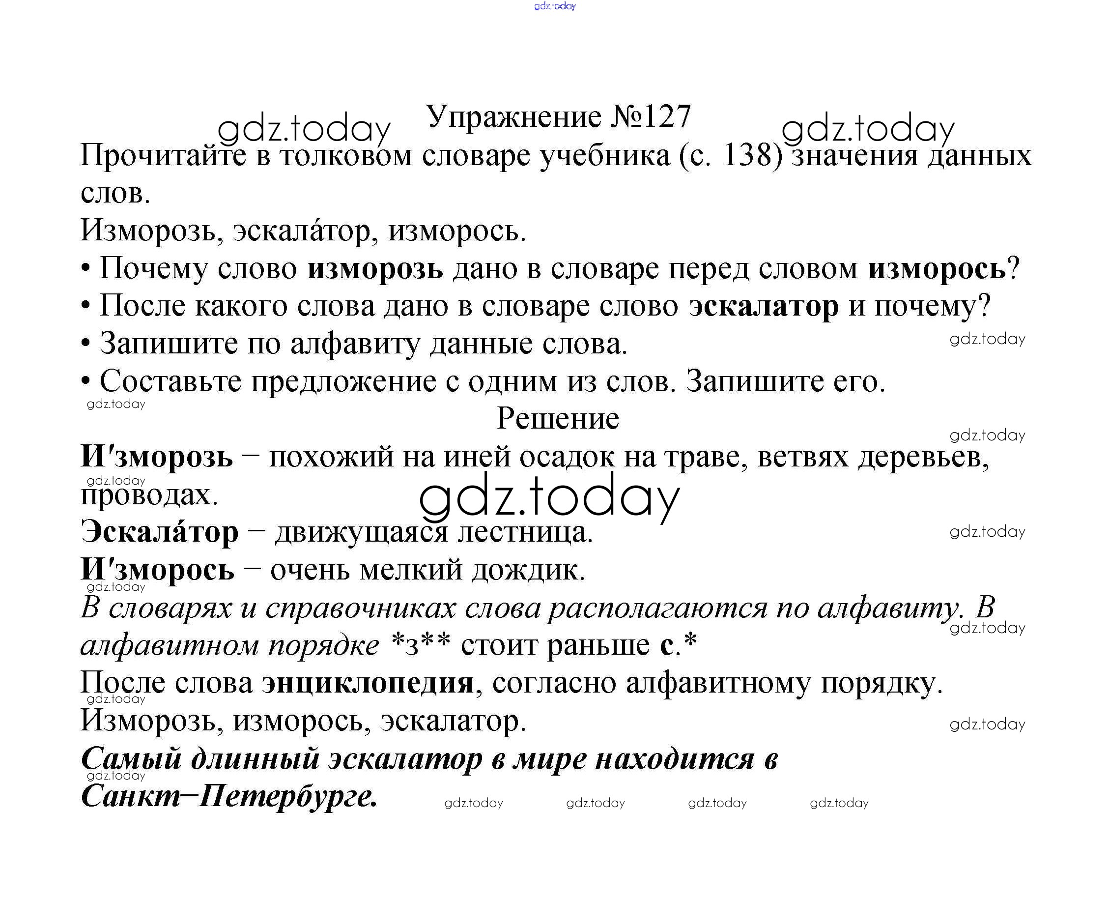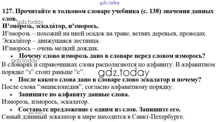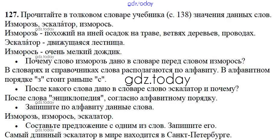 На страницах сайта gdz.today вы найдете учебный и вспомогательный материал, направленный на улучшения знаний школьной программы. ГДЗ - онлайн мир знаний Решение к части №1 (Упражнения) 127 Учебнику по Русскому языку для 2 класса Канакина, Горецкий Просвещение Школа России 2013