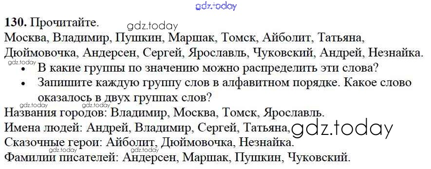 На страницах сайта gdz.today вы найдете учебный и вспомогательный материал, направленный на улучшения знаний школьной программы. ГДЗ - онлайн мир знаний Решение к части №1 (Упражнения) 130 Учебнику по Русскому языку для 2 класса Канакина, Горецкий Просвещение Школа России 2013