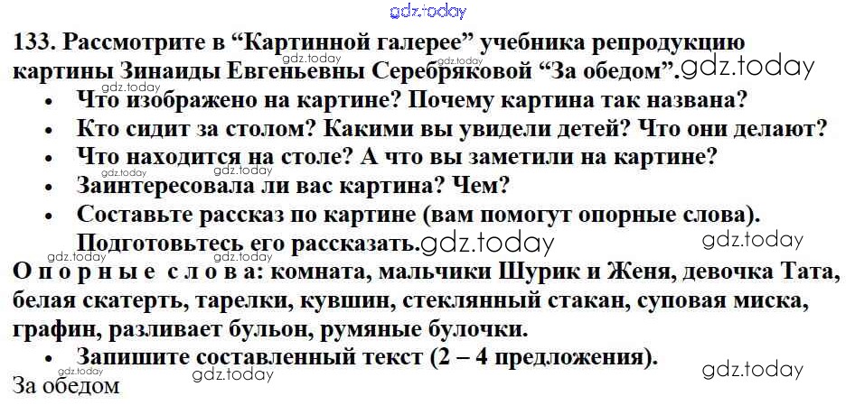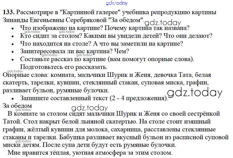 На страницах сайта gdz.today вы найдете учебный и вспомогательный материал, направленный на улучшения знаний школьной программы. ГДЗ - онлайн мир знаний Решение к части №1 (Упражнения) 133 Учебнику по Русскому языку для 2 класса Канакина, Горецкий Просвещение Школа России 2013