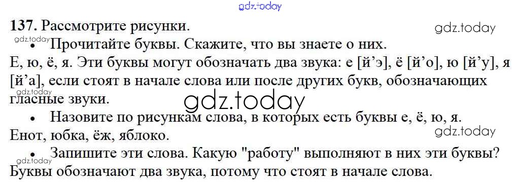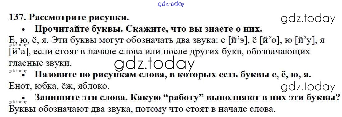 На страницах сайта gdz.today вы найдете учебный и вспомогательный материал, направленный на улучшения знаний школьной программы. ГДЗ - онлайн мир знаний Решение к части №1 (Упражнения) 137 Учебнику по Русскому языку для 2 класса Канакина, Горецкий Просвещение Школа России 2013