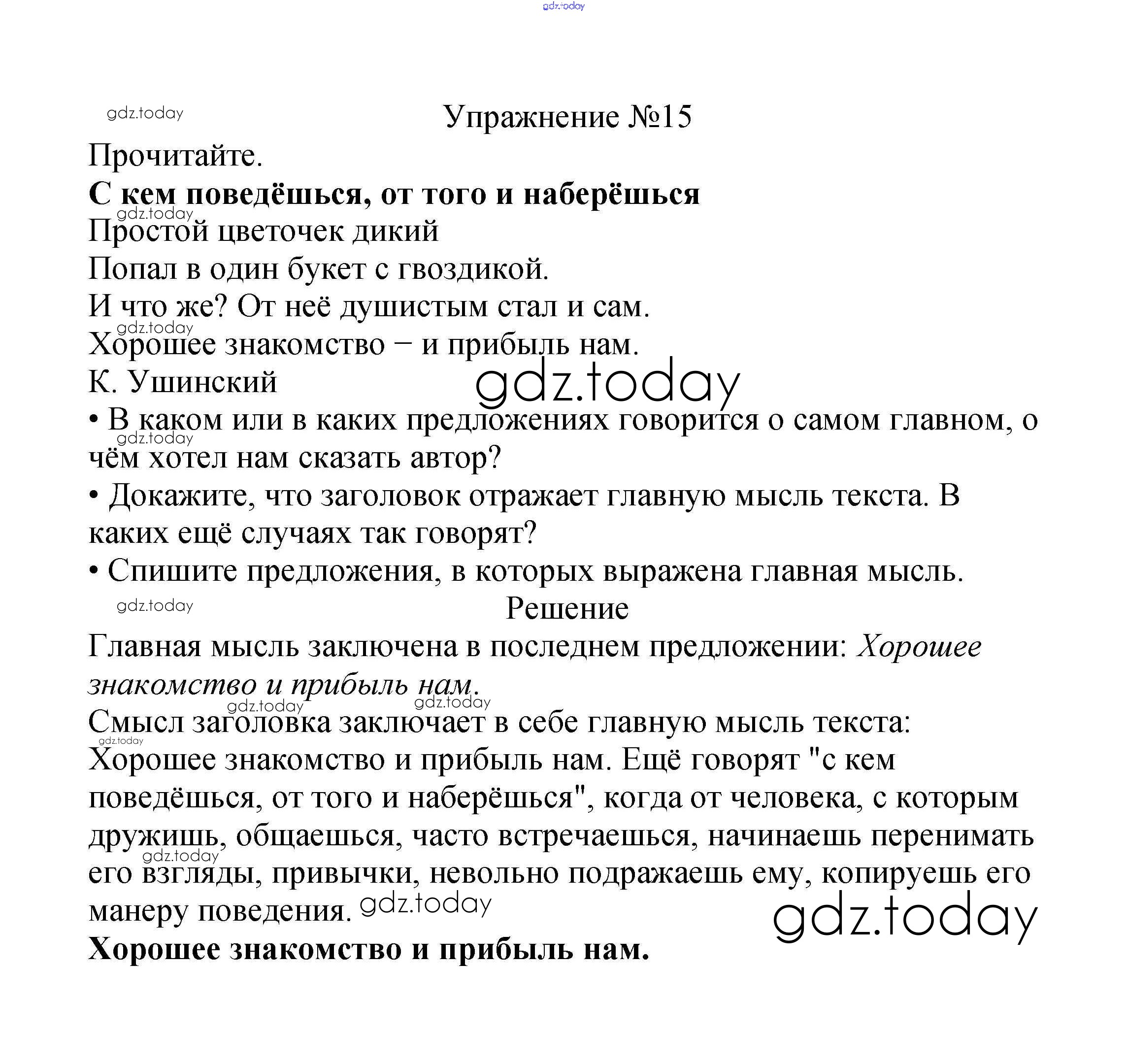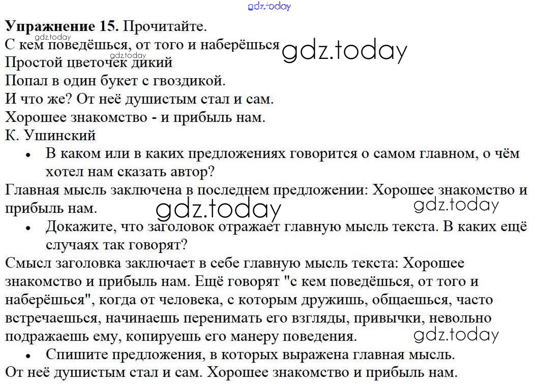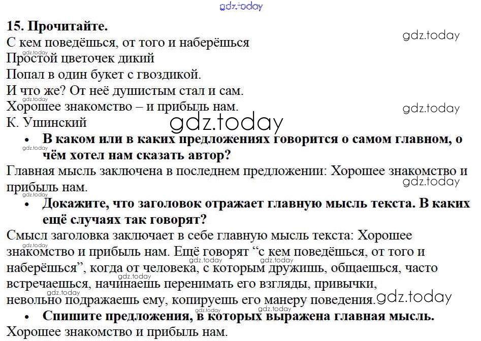 На страницах сайта gdz.today вы найдете учебный и вспомогательный материал, направленный на улучшения знаний школьной программы. ГДЗ - онлайн мир знаний Решение к части №1 (Упражнения) 15 Учебнику по Русскому языку для 2 класса Канакина, Горецкий Просвещение Школа России 2013