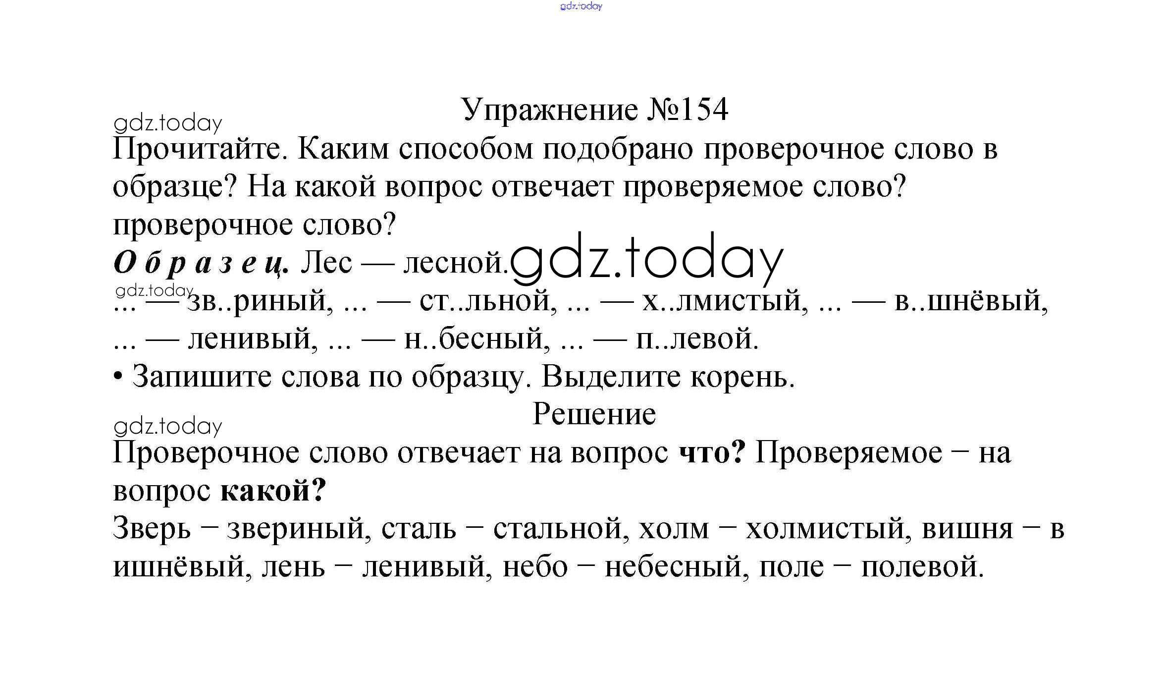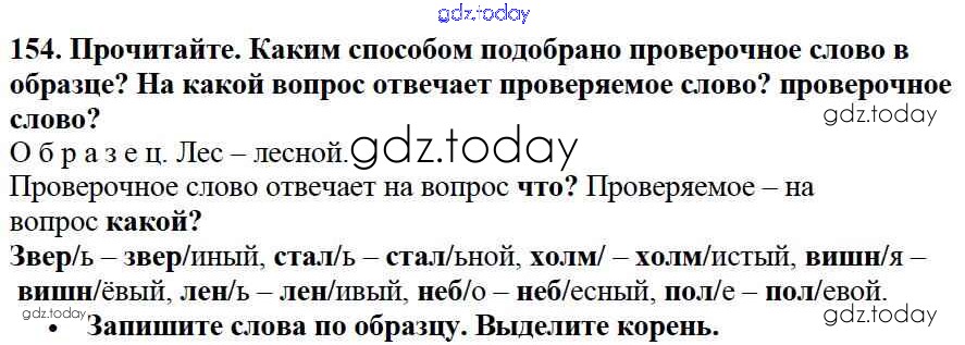 На страницах сайта gdz.today вы найдете учебный и вспомогательный материал, направленный на улучшения знаний школьной программы. ГДЗ - онлайн мир знаний Решение к части №1 (Упражнения) 154 Учебнику по Русскому языку для 2 класса Канакина, Горецкий Просвещение Школа России 2013