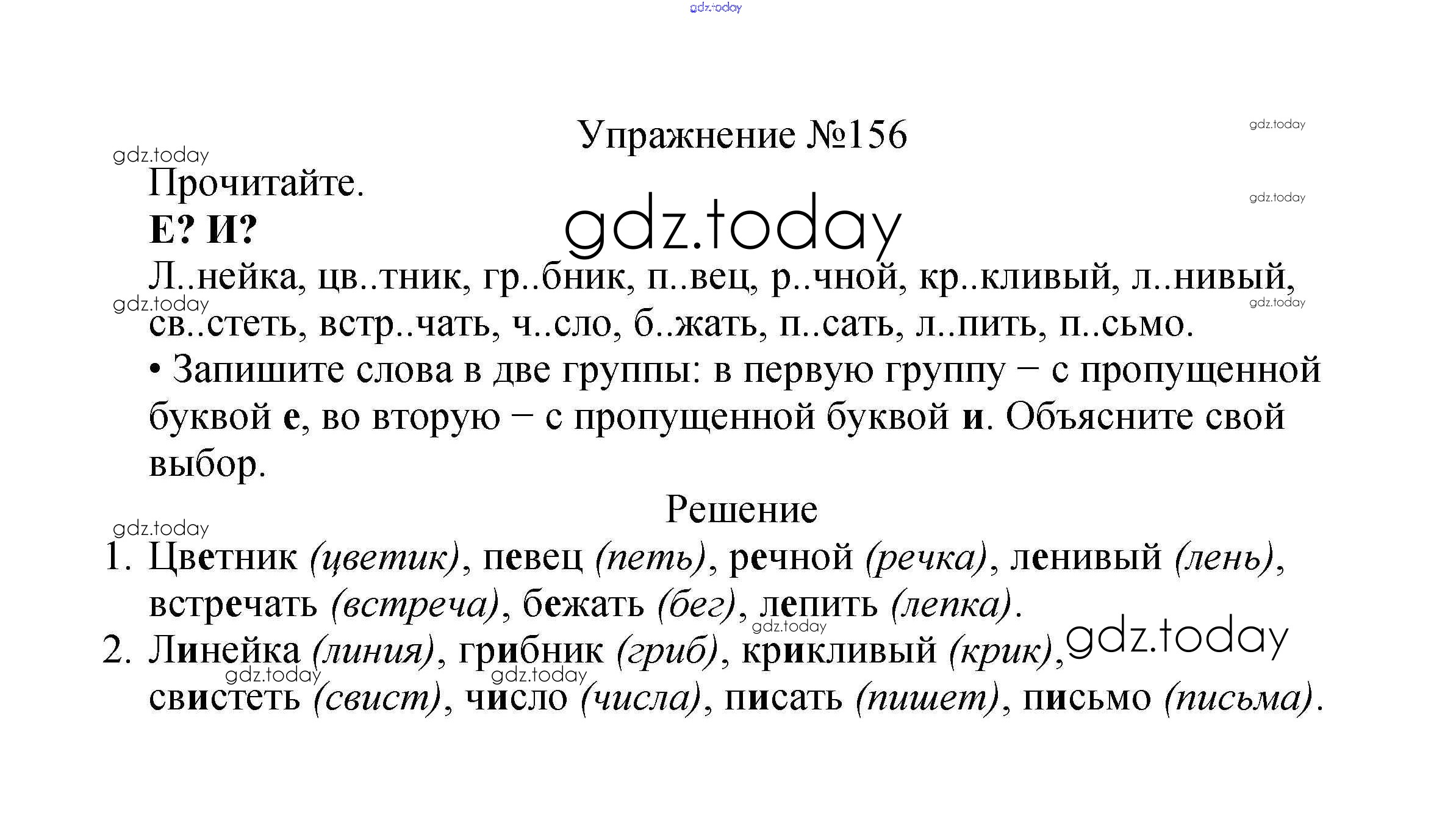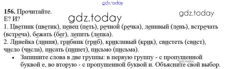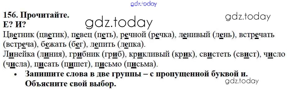 На страницах сайта gdz.today вы найдете учебный и вспомогательный материал, направленный на улучшения знаний школьной программы. ГДЗ - онлайн мир знаний Решение к части №1 (Упражнения) 156 Учебнику по Русскому языку для 2 класса Канакина, Горецкий Просвещение Школа России 2013