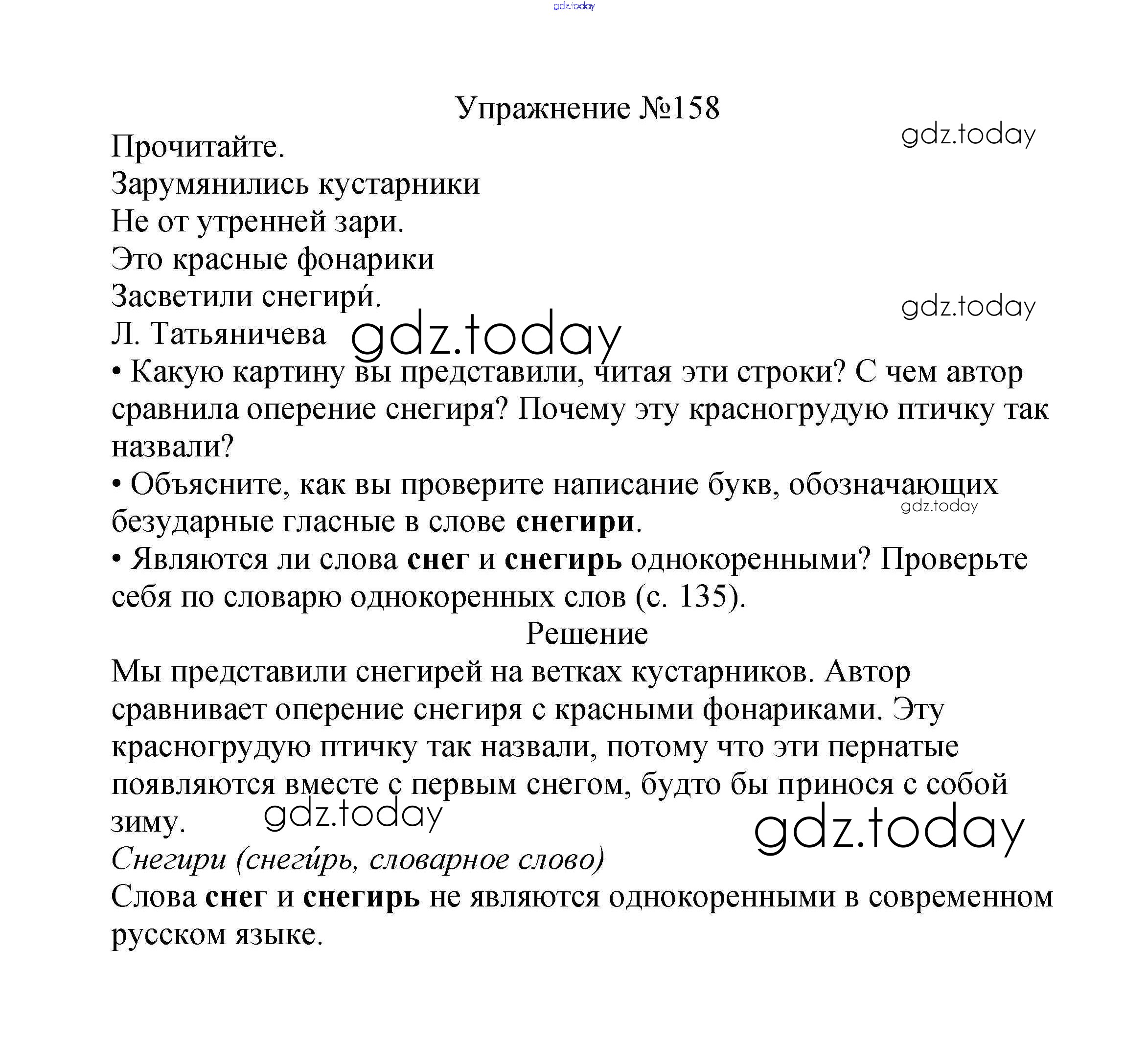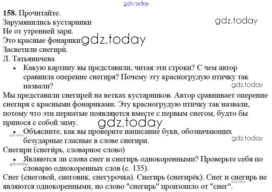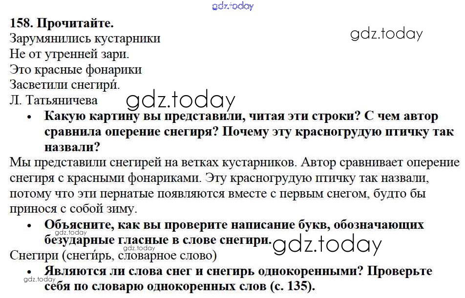На страницах сайта gdz.today вы найдете учебный и вспомогательный материал, направленный на улучшения знаний школьной программы. ГДЗ - онлайн мир знаний Решение к части №1 (Упражнения) 158 Учебнику по Русскому языку для 2 класса Канакина, Горецкий Просвещение Школа России 2013