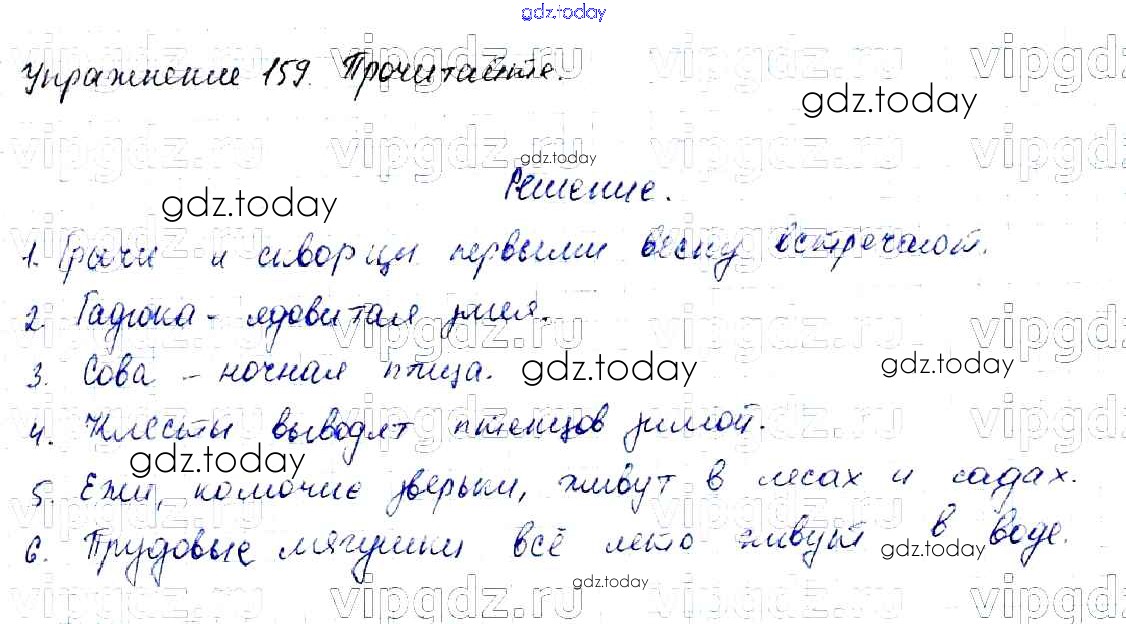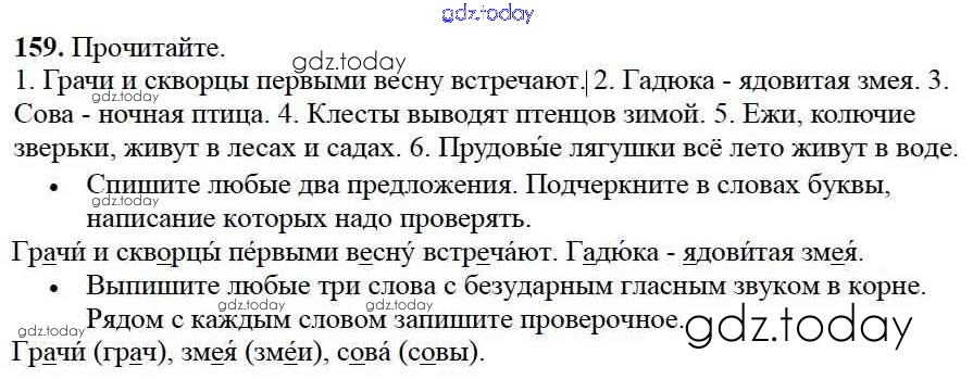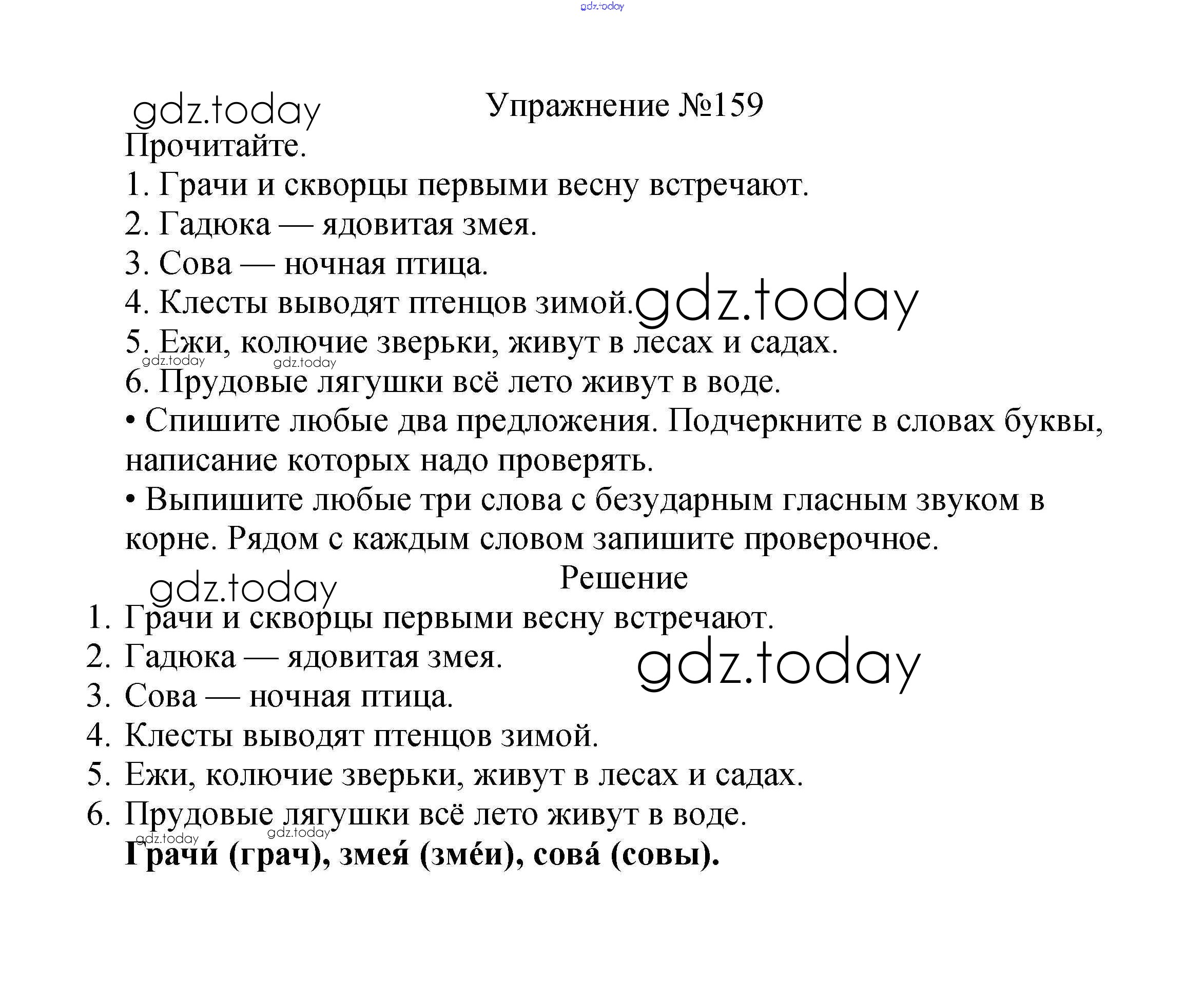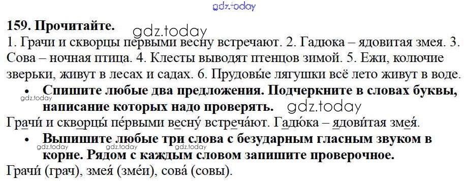 На страницах сайта gdz.today вы найдете учебный и вспомогательный материал, направленный на улучшения знаний школьной программы. ГДЗ - онлайн мир знаний Решение к части №1 (Упражнения) 159 Учебнику по Русскому языку для 2 класса Канакина, Горецкий Просвещение Школа России 2013