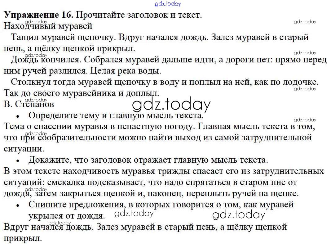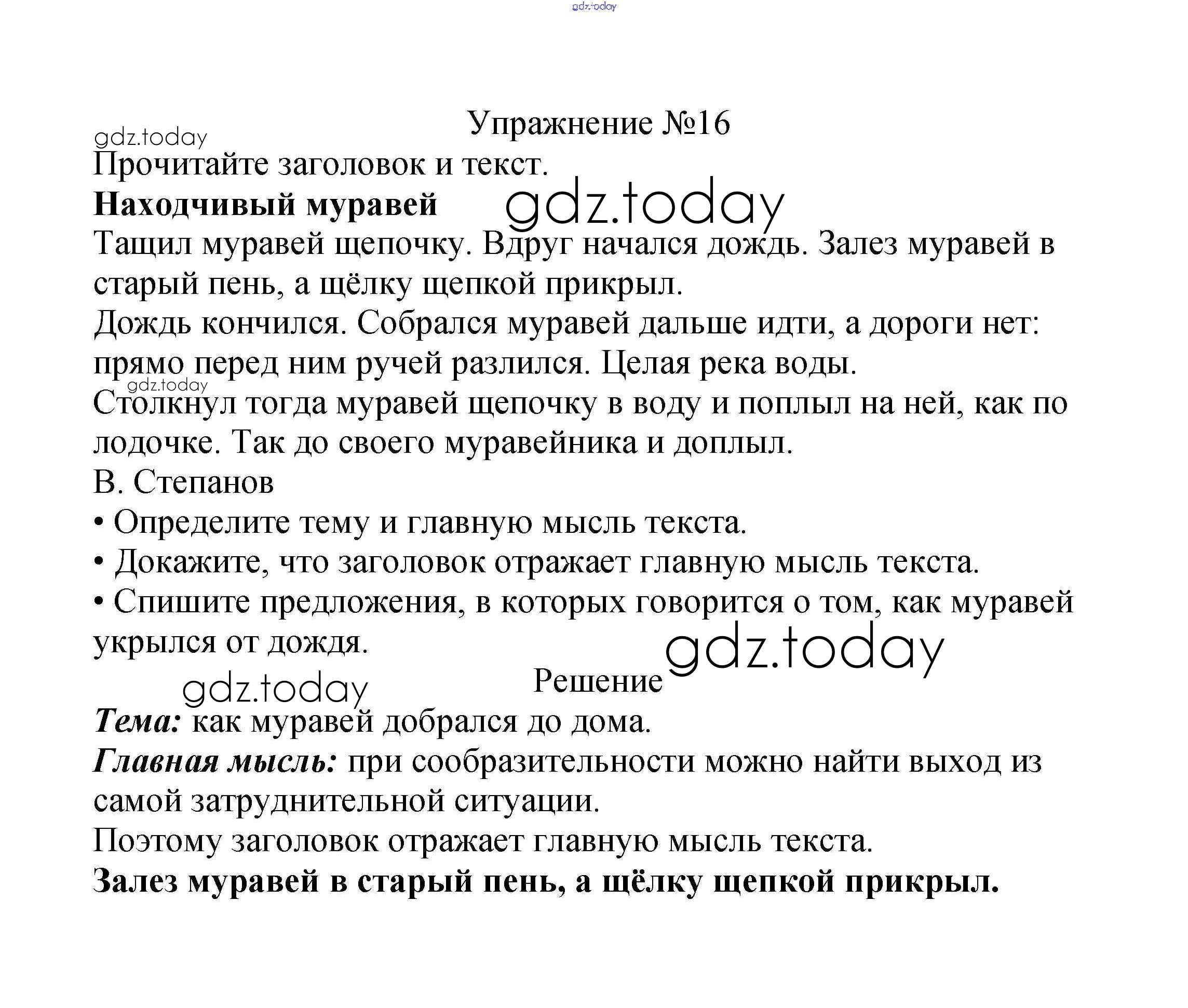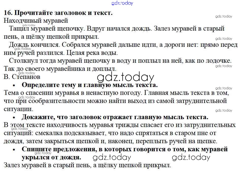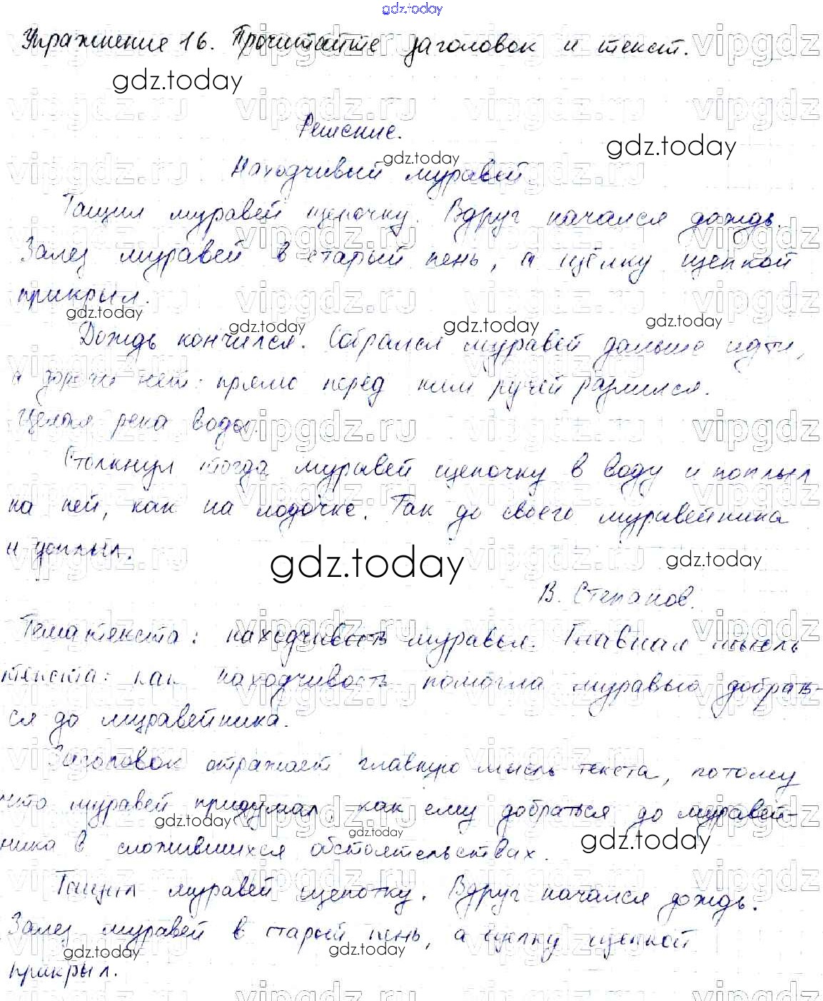 На страницах сайта gdz.today вы найдете учебный и вспомогательный материал, направленный на улучшения знаний школьной программы. ГДЗ - онлайн мир знаний Решение к части №1 (Упражнения) 16 Учебнику по Русскому языку для 2 класса Канакина, Горецкий Просвещение Школа России 2013