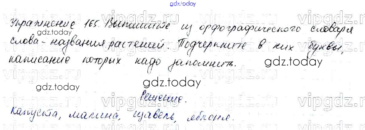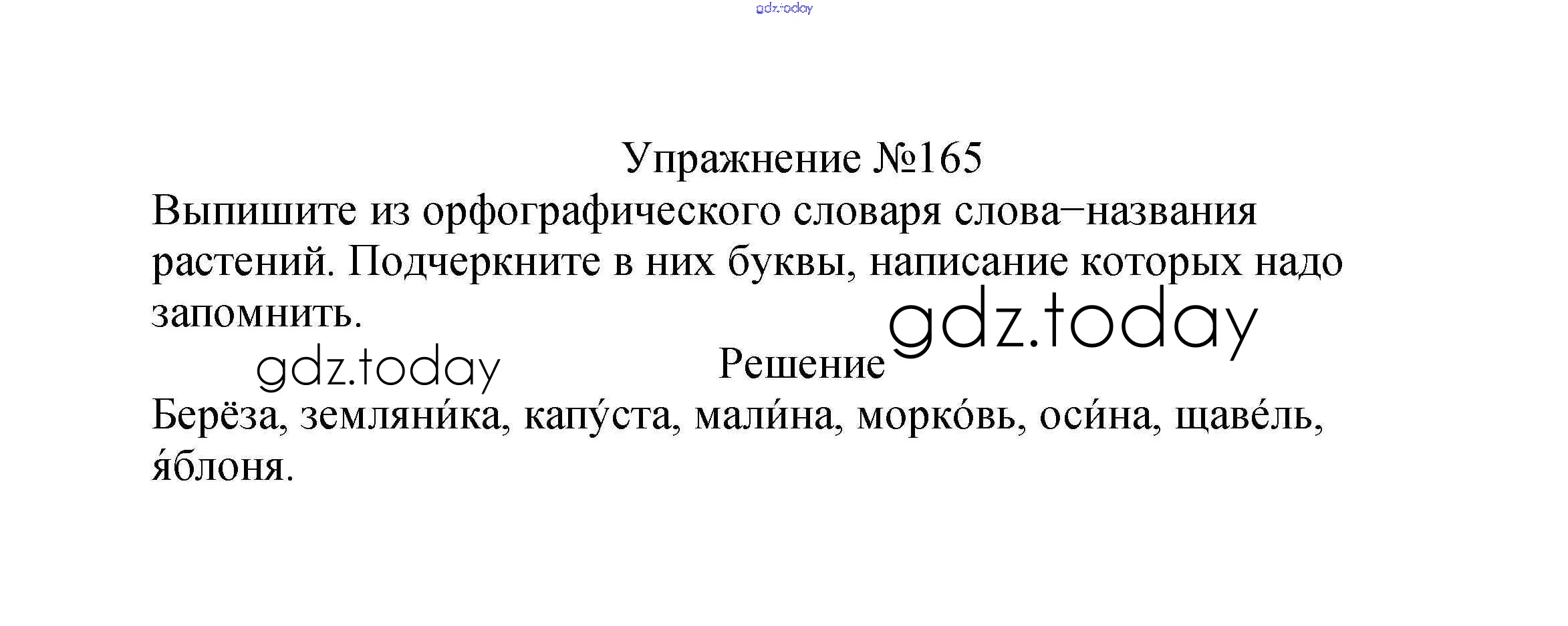 На страницах сайта gdz.today вы найдете учебный и вспомогательный материал, направленный на улучшения знаний школьной программы. ГДЗ - онлайн мир знаний Решение к части №1 (Упражнения) 165 Учебнику по Русскому языку для 2 класса Канакина, Горецкий Просвещение Школа России 2013
