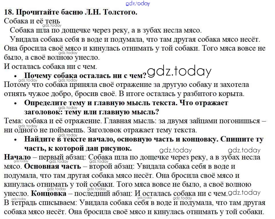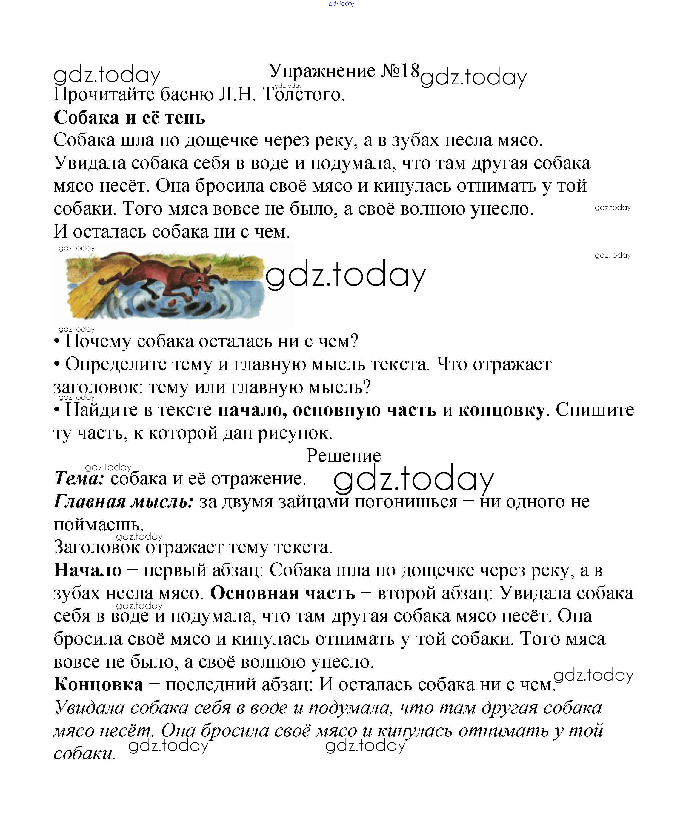 На страницах сайта gdz.today вы найдете учебный и вспомогательный материал, направленный на улучшения знаний школьной программы. ГДЗ - онлайн мир знаний Решение к части №1 (Упражнения) 18 Учебнику по Русскому языку для 2 класса Канакина, Горецкий Просвещение Школа России 2013