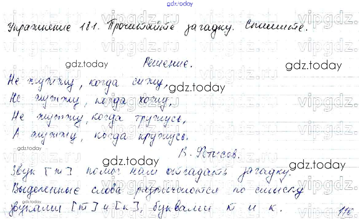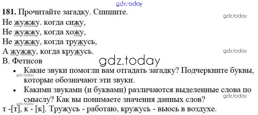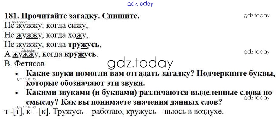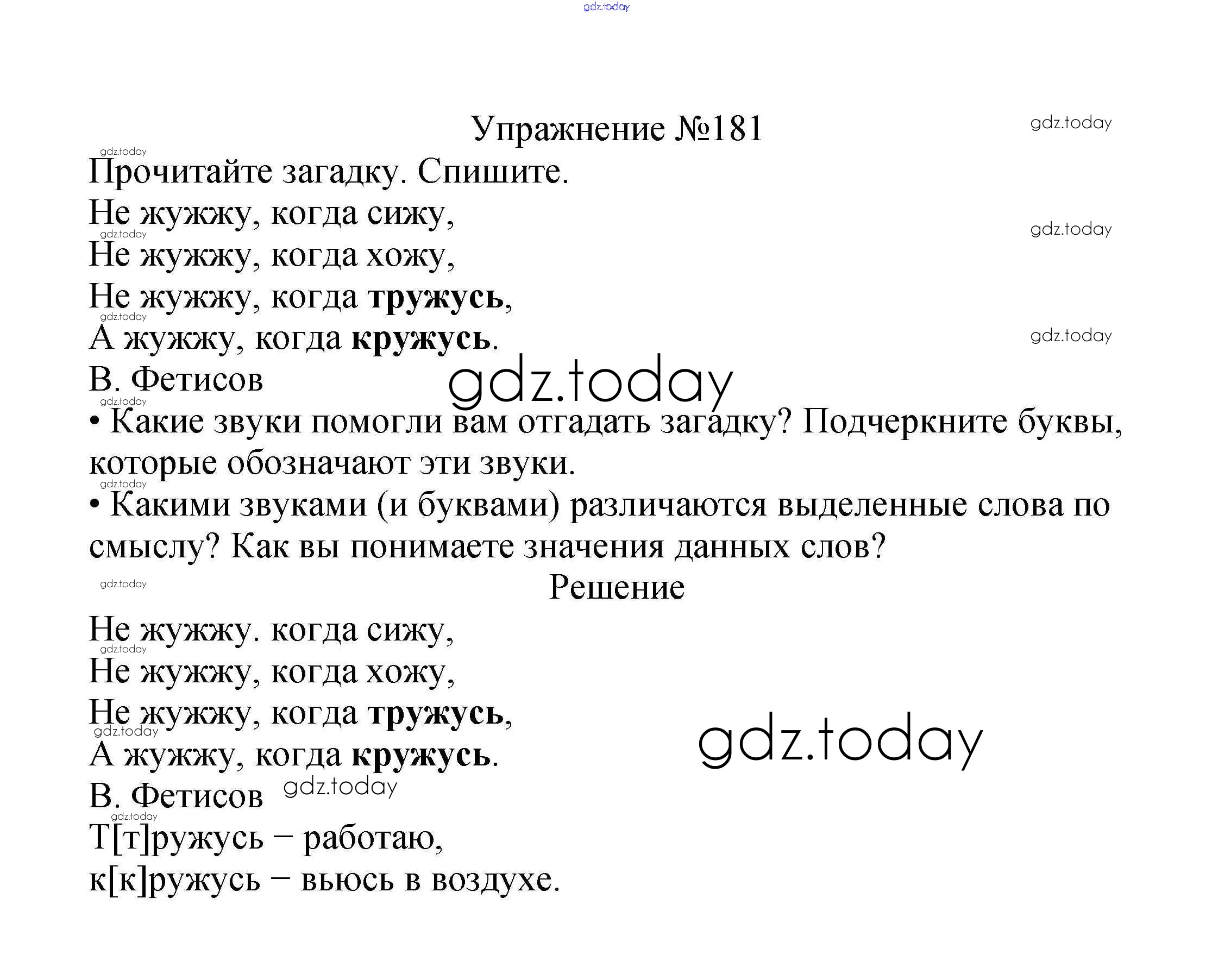 На страницах сайта gdz.today вы найдете учебный и вспомогательный материал, направленный на улучшения знаний школьной программы. ГДЗ - онлайн мир знаний Решение к части №1 (Упражнения) 181 Учебнику по Русскому языку для 2 класса Канакина, Горецкий Просвещение Школа России 2013
