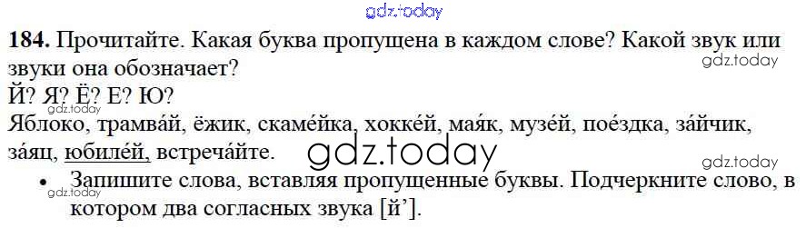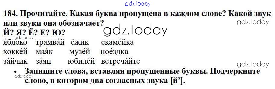 На страницах сайта gdz.today вы найдете учебный и вспомогательный материал, направленный на улучшения знаний школьной программы. ГДЗ - онлайн мир знаний Решение к части №1 (Упражнения) 184 Учебнику по Русскому языку для 2 класса Канакина, Горецкий Просвещение Школа России 2013