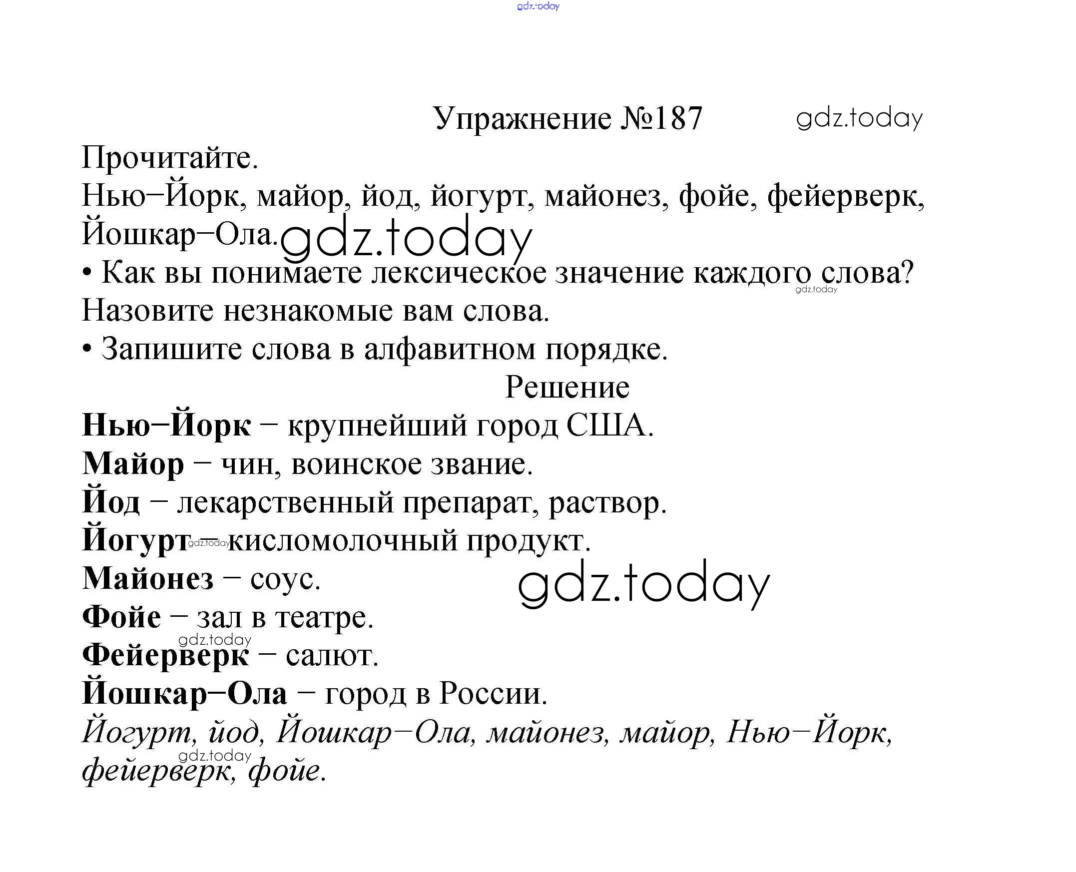 На страницах сайта gdz.today вы найдете учебный и вспомогательный материал, направленный на улучшения знаний школьной программы. ГДЗ - онлайн мир знаний Решение к части №1 (Упражнения) 187 Учебнику по Русскому языку для 2 класса Канакина, Горецкий Просвещение Школа России 2013