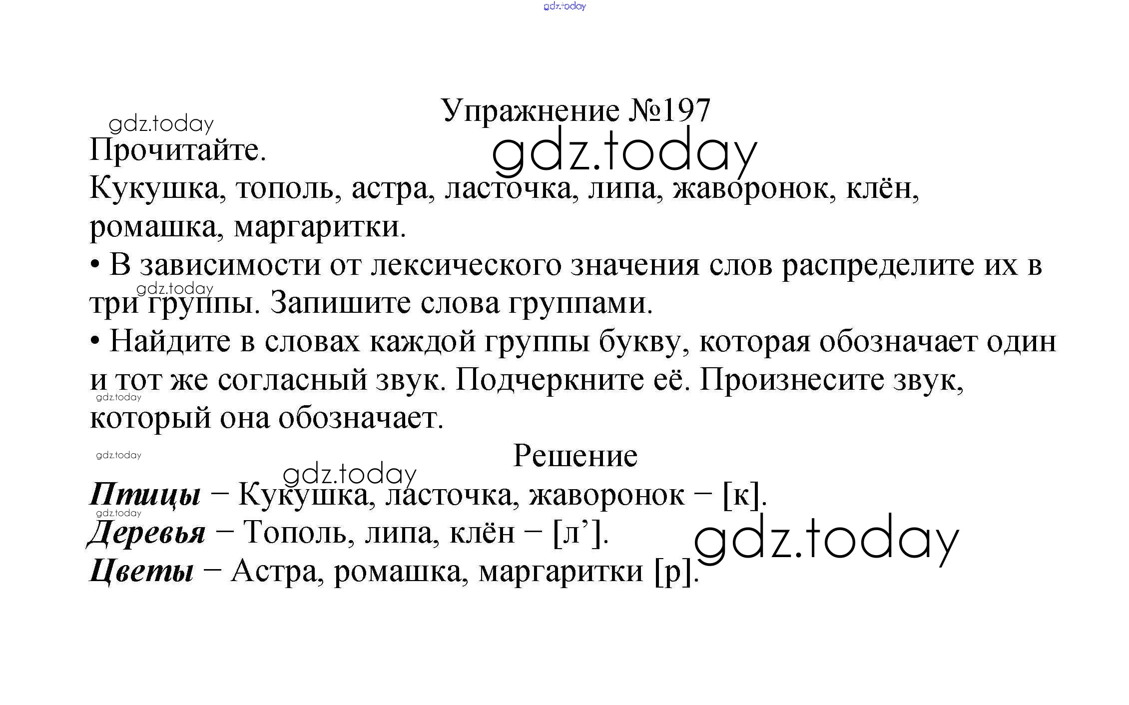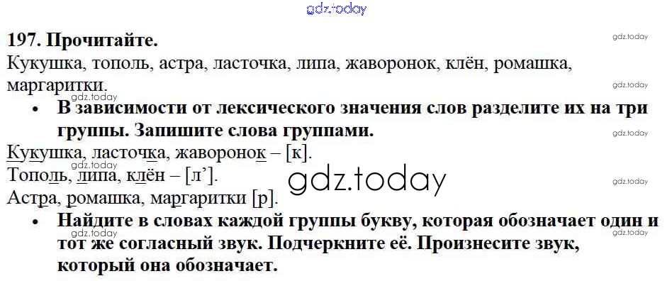 На страницах сайта gdz.today вы найдете учебный и вспомогательный материал, направленный на улучшения знаний школьной программы. ГДЗ - онлайн мир знаний Решение к части №1 (Упражнения) 197 Учебнику по Русскому языку для 2 класса Канакина, Горецкий Просвещение Школа России 2013