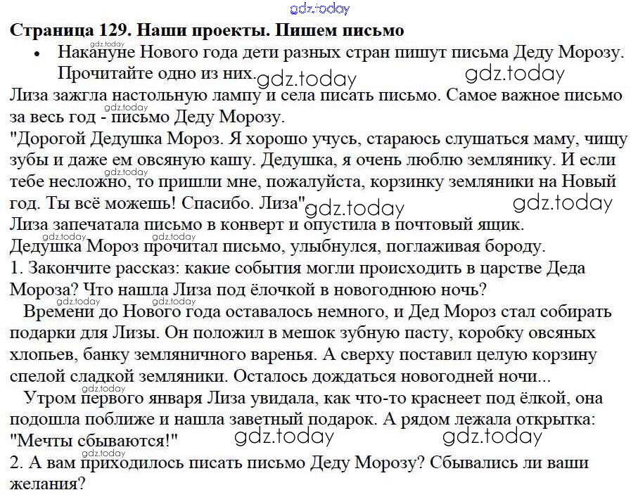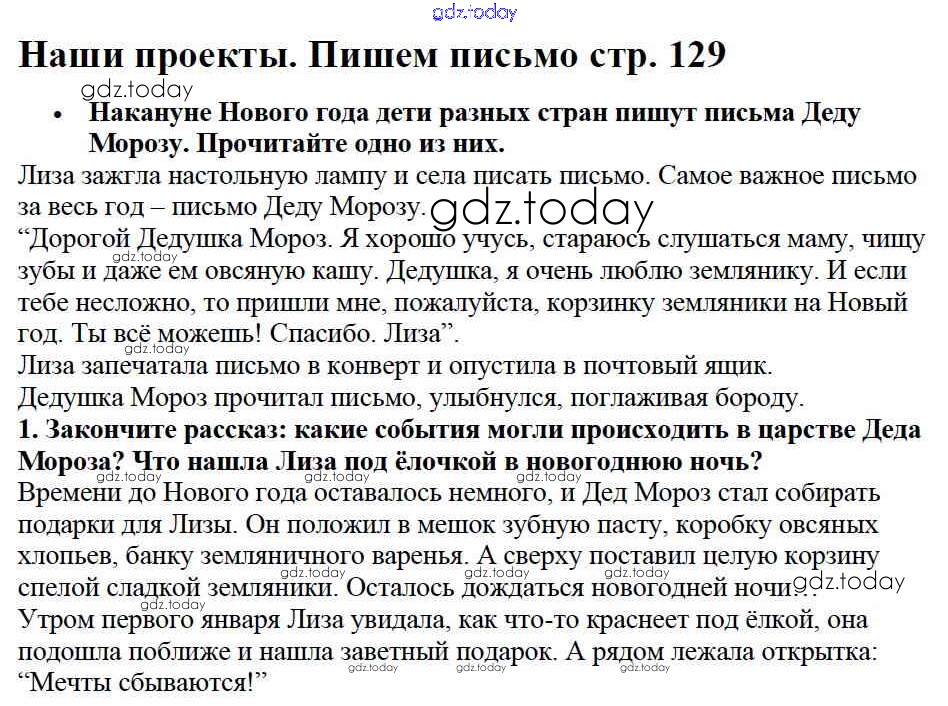 На страницах сайта gdz.today вы найдете учебный и вспомогательный материал, направленный на улучшения знаний школьной программы. ГДЗ - онлайн мир знаний Наши проекты Решение к части №1 (Упражнения) стр. 129 Учебнику по Русскому языку для 2 класса Канакина, Горецкий Просвещение Школа России 2013