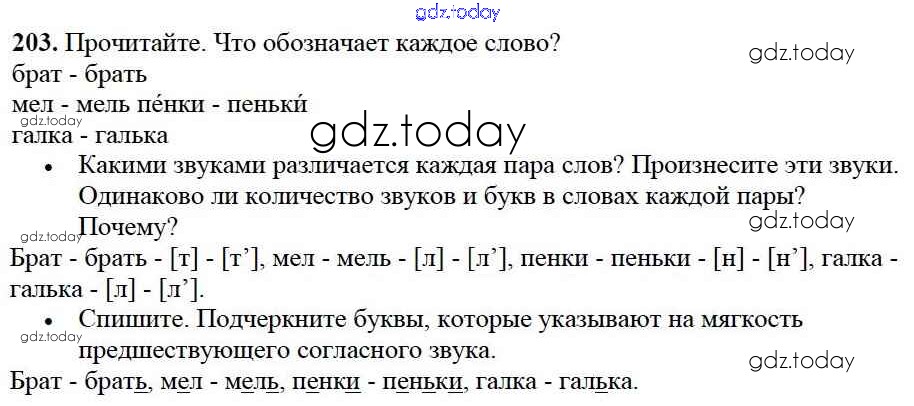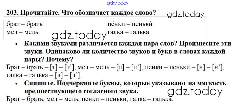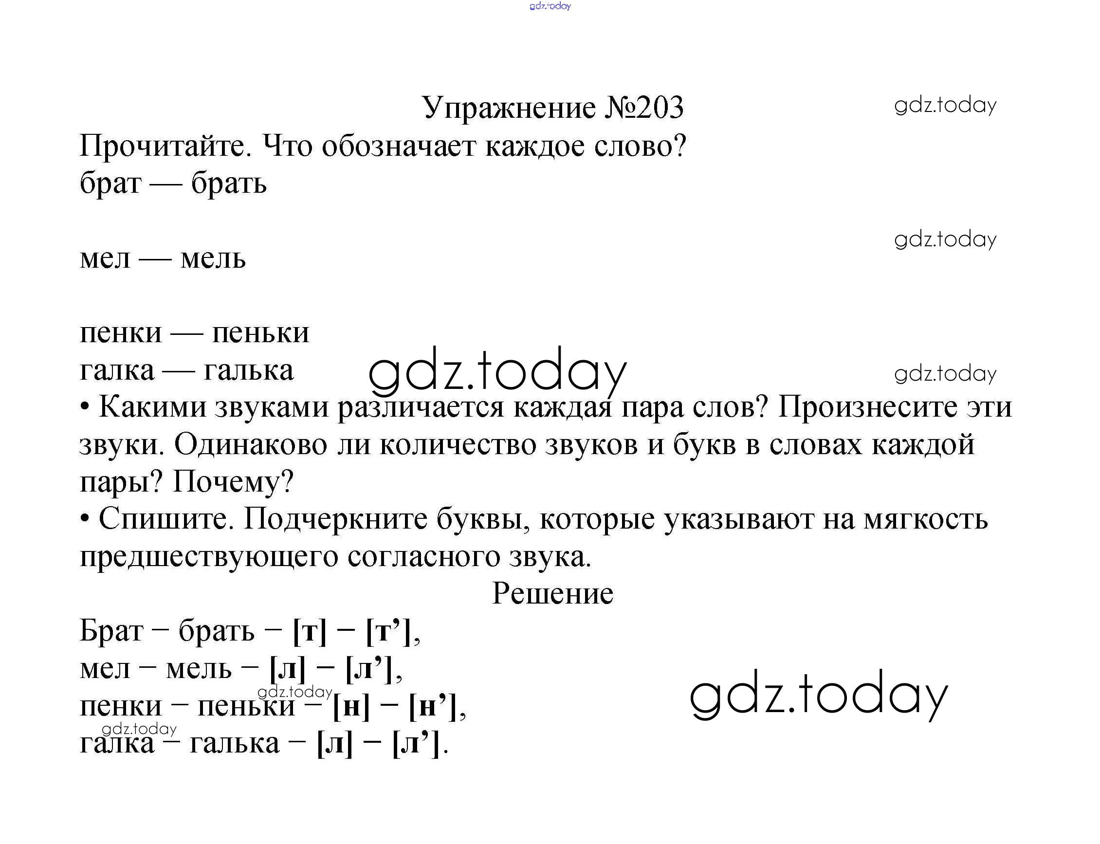 На страницах сайта gdz.today вы найдете учебный и вспомогательный материал, направленный на улучшения знаний школьной программы. ГДЗ - онлайн мир знаний Решение к части №1 (Упражнения) 203 Учебнику по Русскому языку для 2 класса Канакина, Горецкий Просвещение Школа России 2013