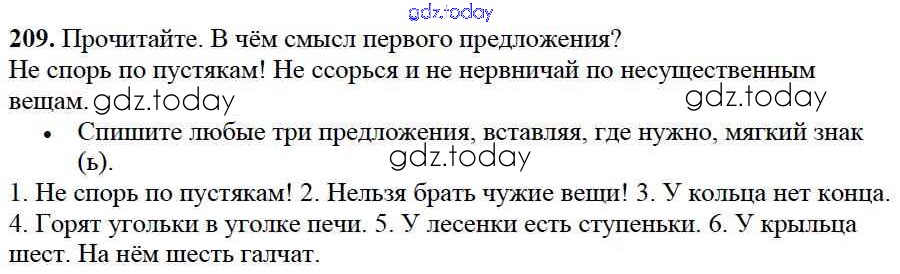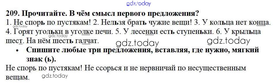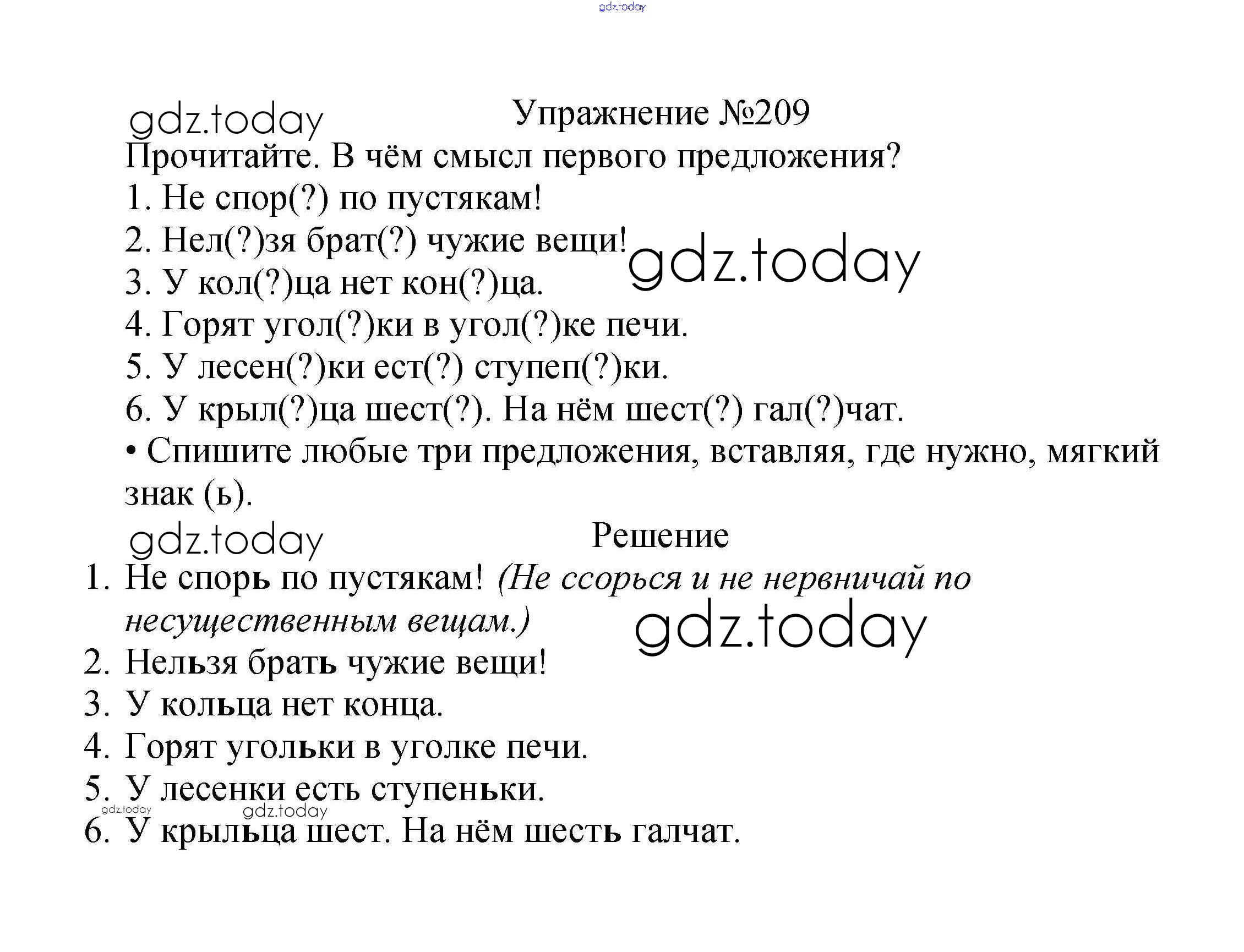 На страницах сайта gdz.today вы найдете учебный и вспомогательный материал, направленный на улучшения знаний школьной программы. ГДЗ - онлайн мир знаний Решение к части №1 (Упражнения) 209 Учебнику по Русскому языку для 2 класса Канакина, Горецкий Просвещение Школа России 2013