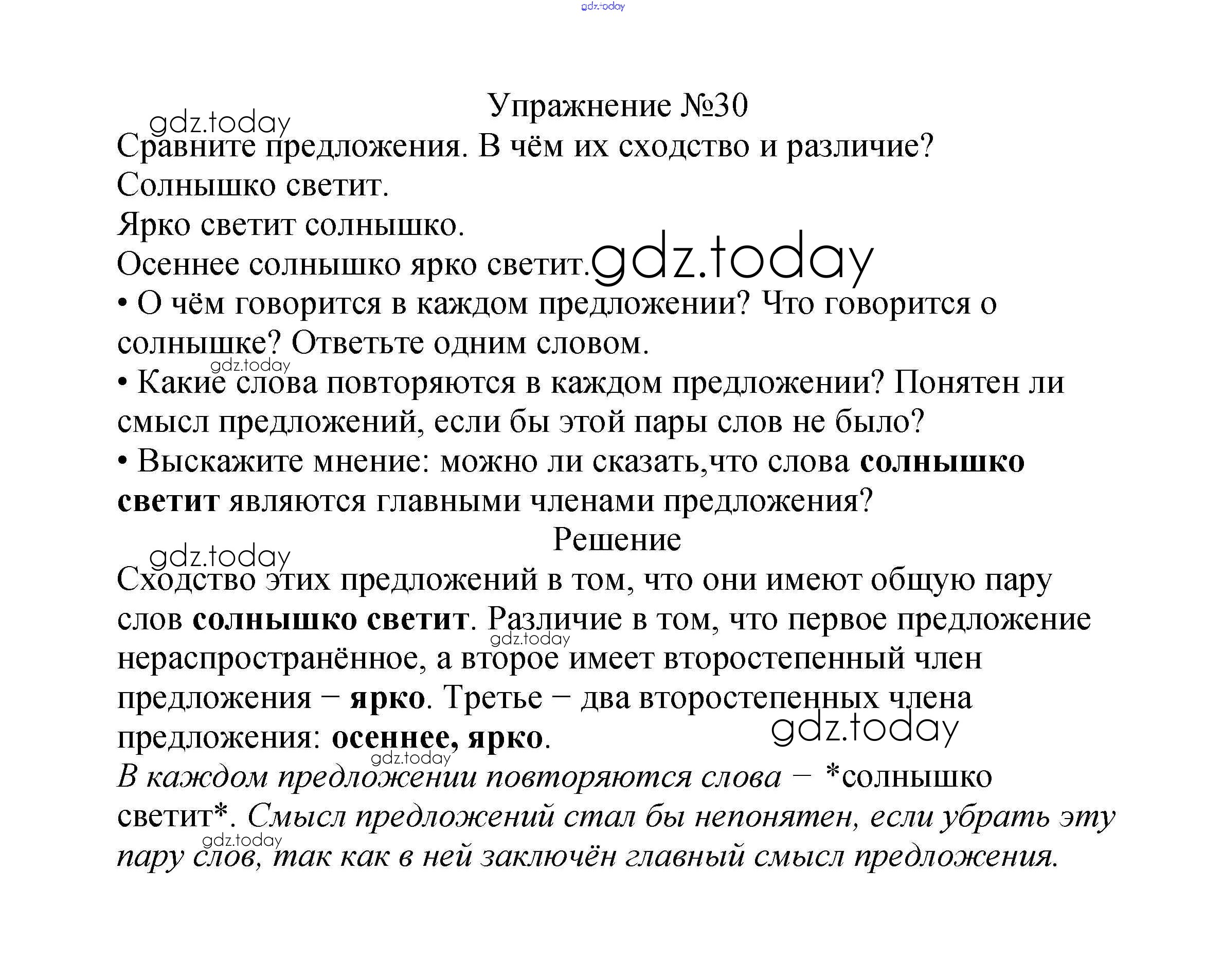 Ответы к Решение к части №1 (Упражнения) 30 Учебнику по Русскому языку для 2 класса Канакина, Горецкий Просвещение Школа России 2013