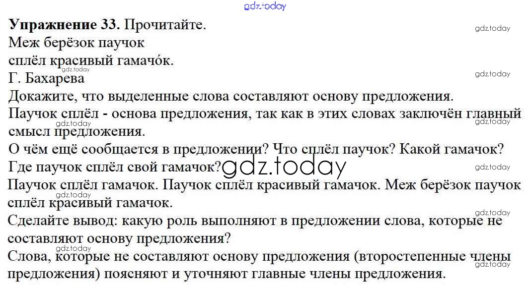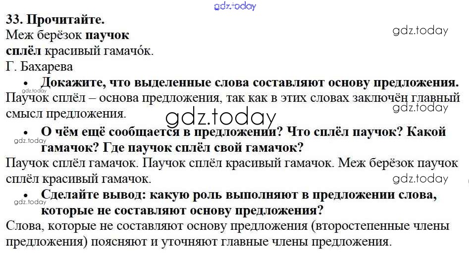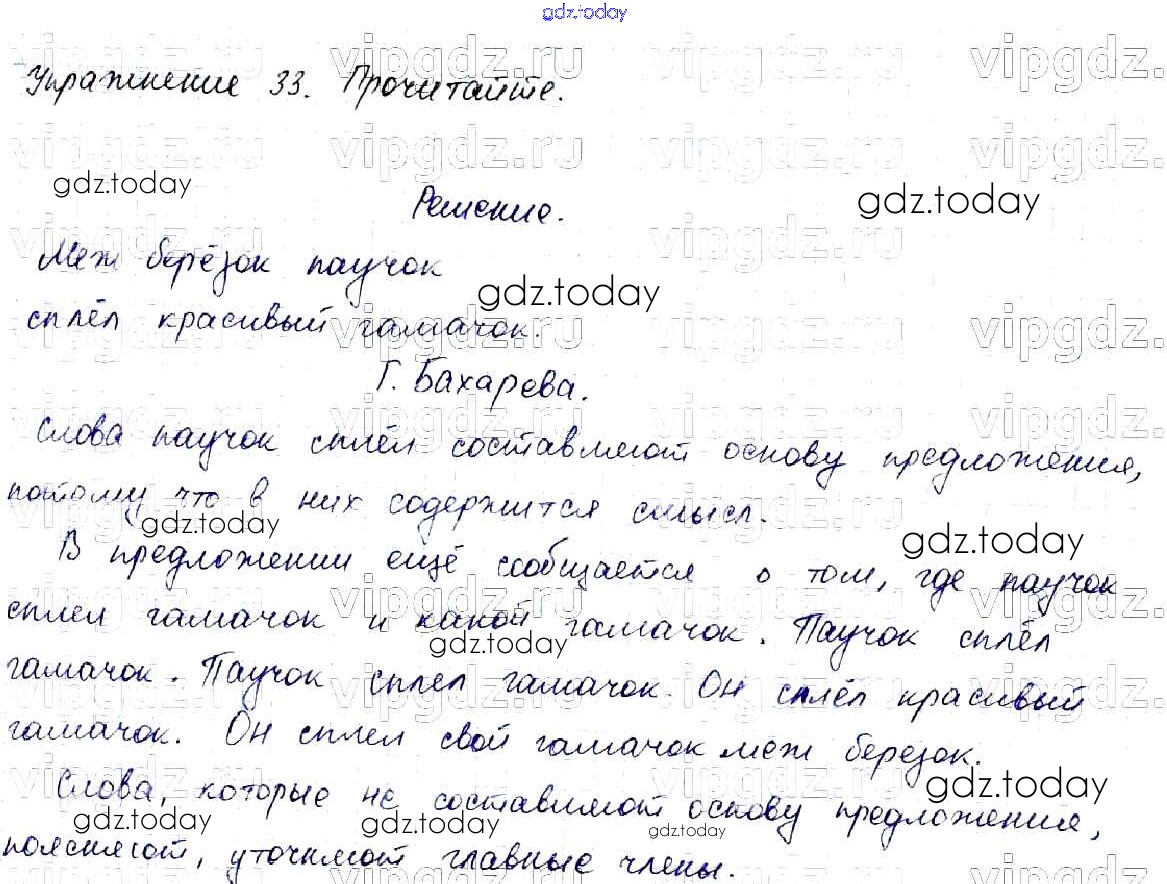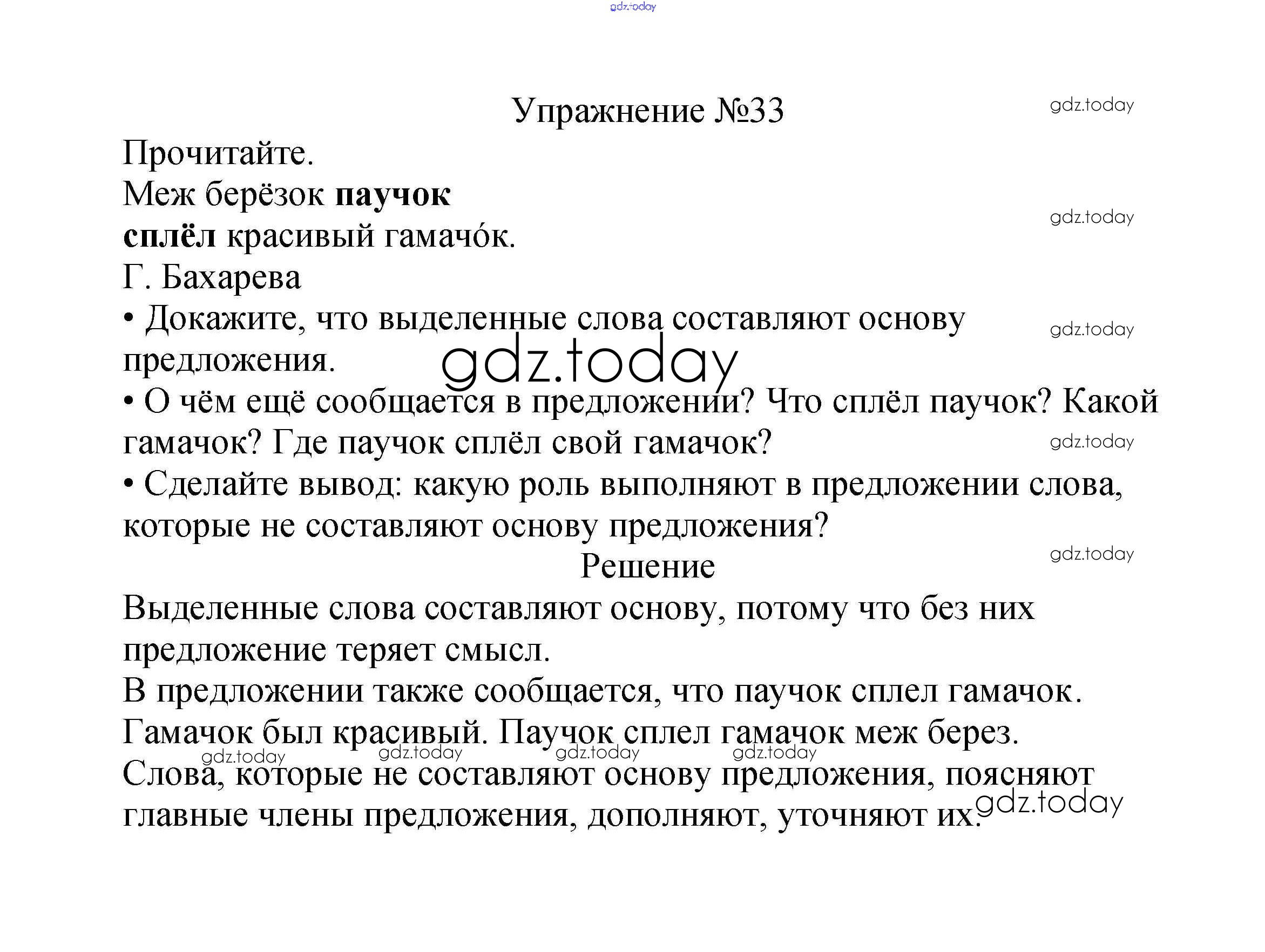 На страницах сайта gdz.today вы найдете учебный и вспомогательный материал, направленный на улучшения знаний школьной программы. ГДЗ - онлайн мир знаний Решение к части №1 (Упражнения) 33 Учебнику по Русскому языку для 2 класса Канакина, Горецкий Просвещение Школа России 2013