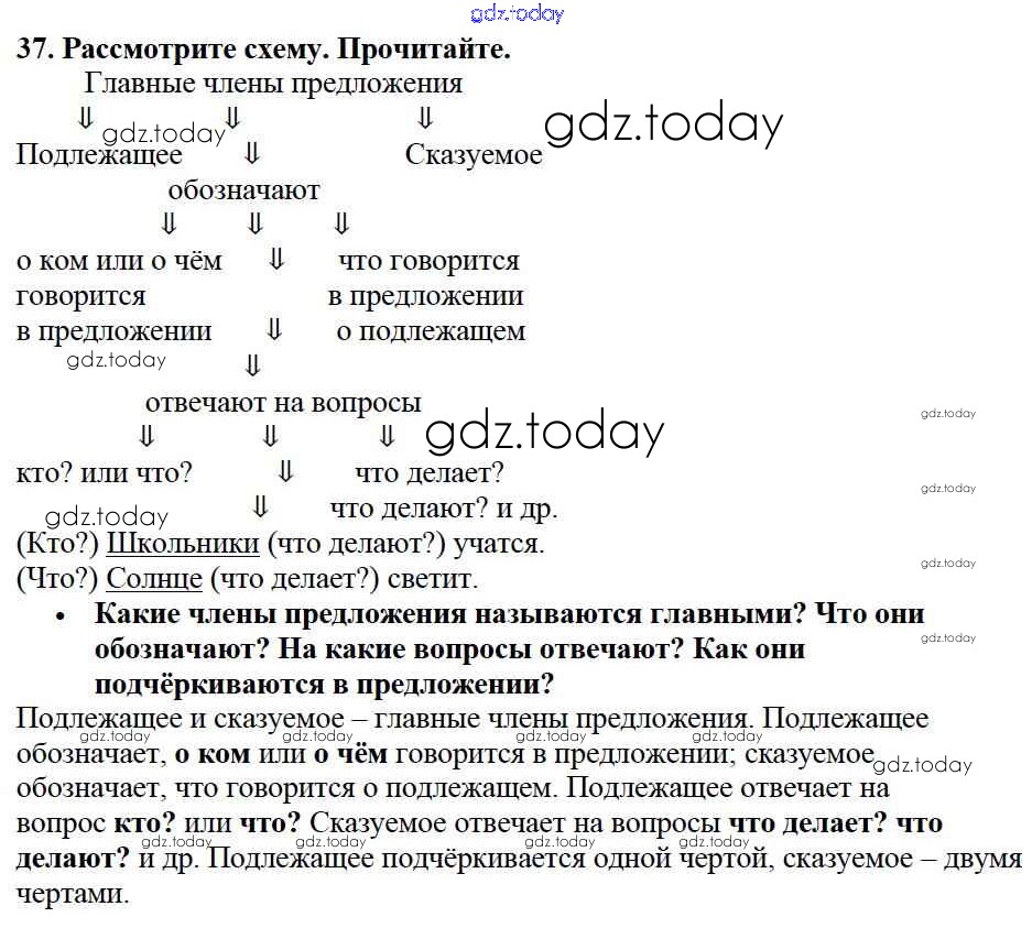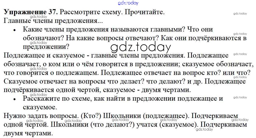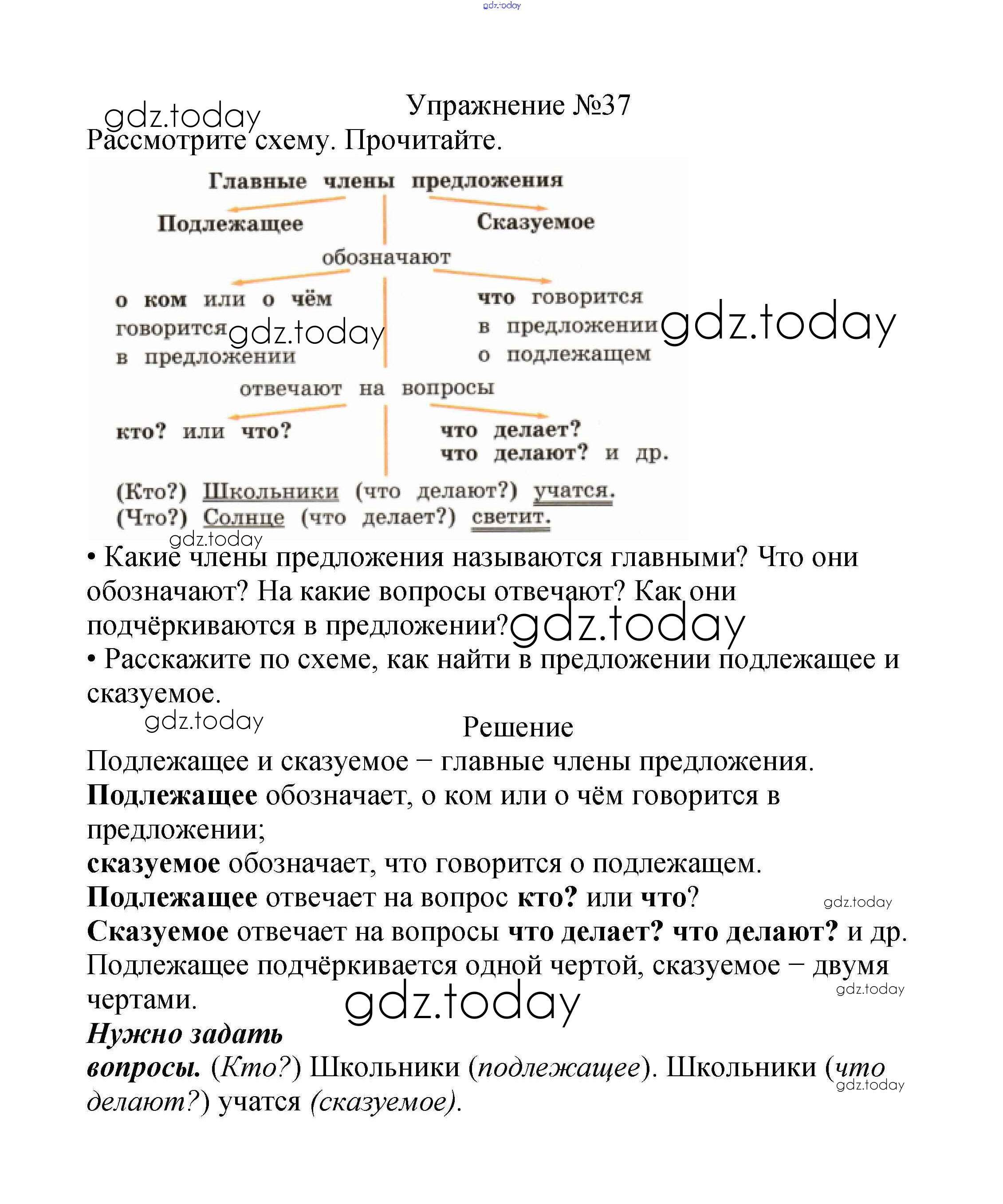 На страницах сайта gdz.today вы найдете учебный и вспомогательный материал, направленный на улучшения знаний школьной программы. ГДЗ - онлайн мир знаний Решение к части №1 (Упражнения) 37 Учебнику по Русскому языку для 2 класса Канакина, Горецкий Просвещение Школа России 2013