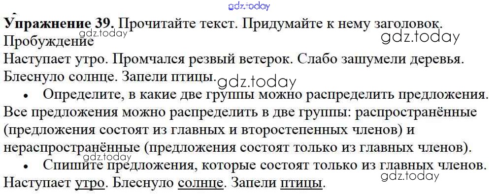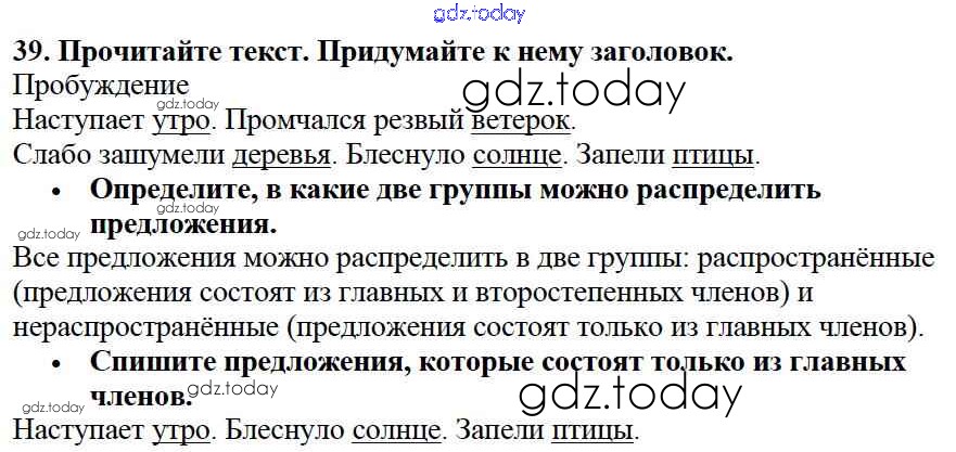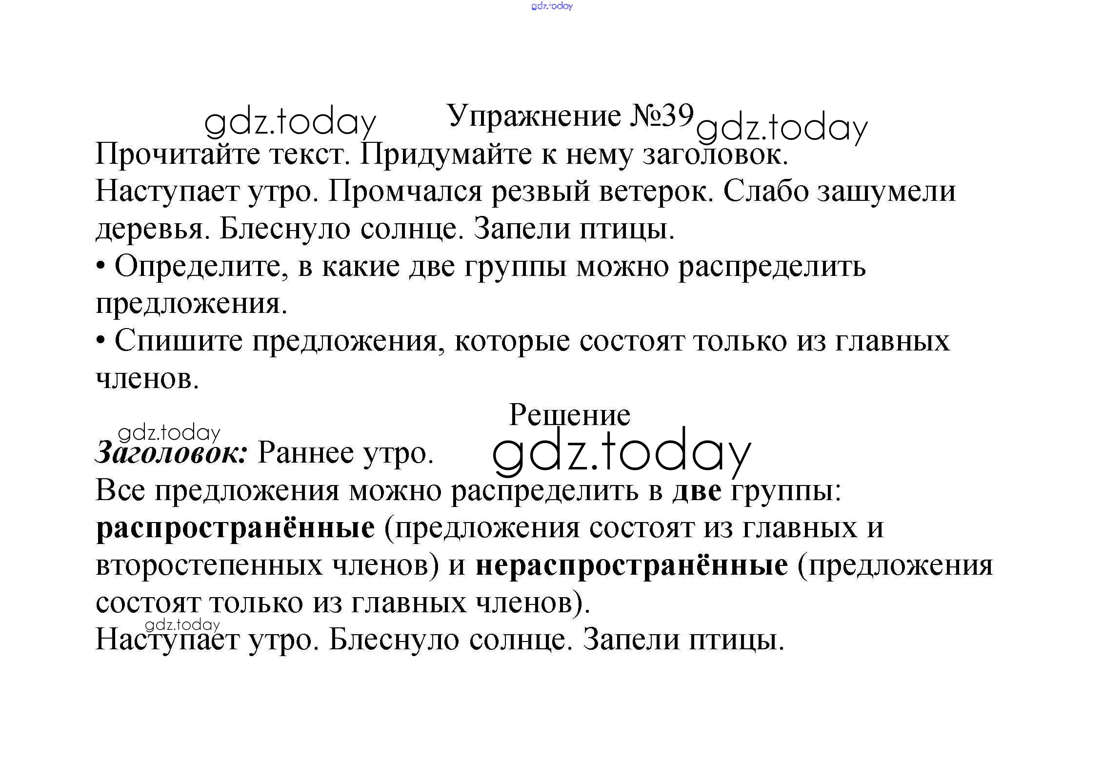 На страницах сайта gdz.today вы найдете учебный и вспомогательный материал, направленный на улучшения знаний школьной программы. ГДЗ - онлайн мир знаний Решение к части №1 (Упражнения) 39 Учебнику по Русскому языку для 2 класса Канакина, Горецкий Просвещение Школа России 2013