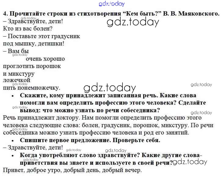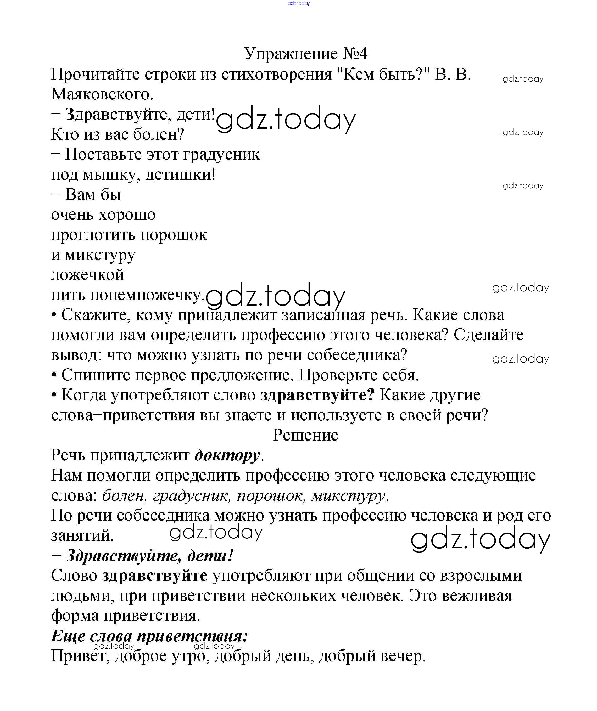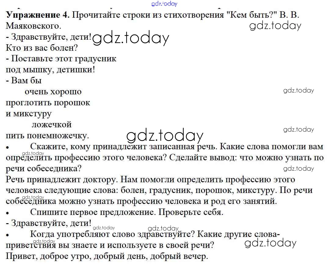 На страницах сайта gdz.today вы найдете учебный и вспомогательный материал, направленный на улучшения знаний школьной программы. ГДЗ - онлайн мир знаний Решение к части №1 (Упражнения) 4 Учебнику по Русскому языку для 2 класса Канакина, Горецкий Просвещение Школа России 2013