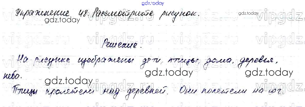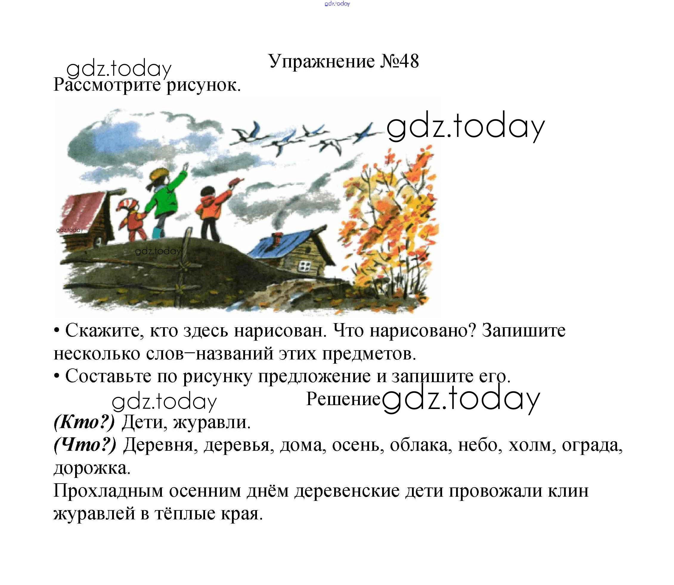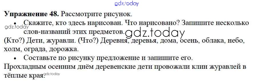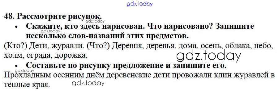 На страницах сайта gdz.today вы найдете учебный и вспомогательный материал, направленный на улучшения знаний школьной программы. ГДЗ - онлайн мир знаний Решение к части №1 (Упражнения) 48 Учебнику по Русскому языку для 2 класса Канакина, Горецкий Просвещение Школа России 2013