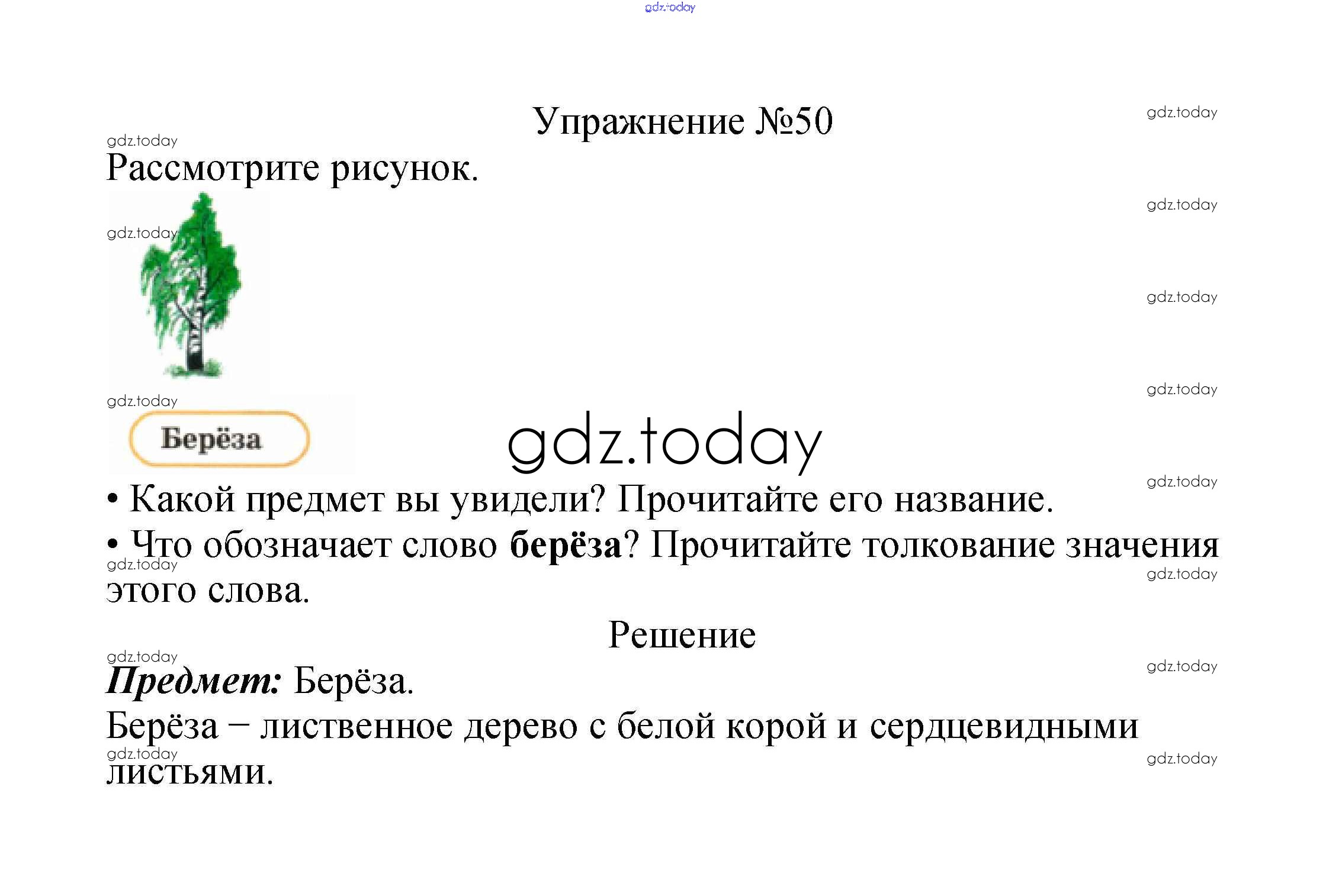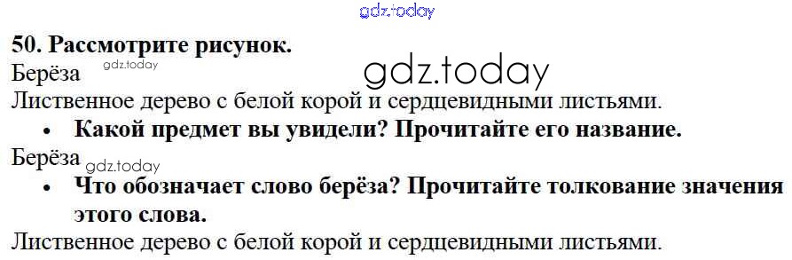 На страницах сайта gdz.today вы найдете учебный и вспомогательный материал, направленный на улучшения знаний школьной программы. ГДЗ - онлайн мир знаний Решение к части №1 (Упражнения) 50 Учебнику по Русскому языку для 2 класса Канакина, Горецкий Просвещение Школа России 2013
