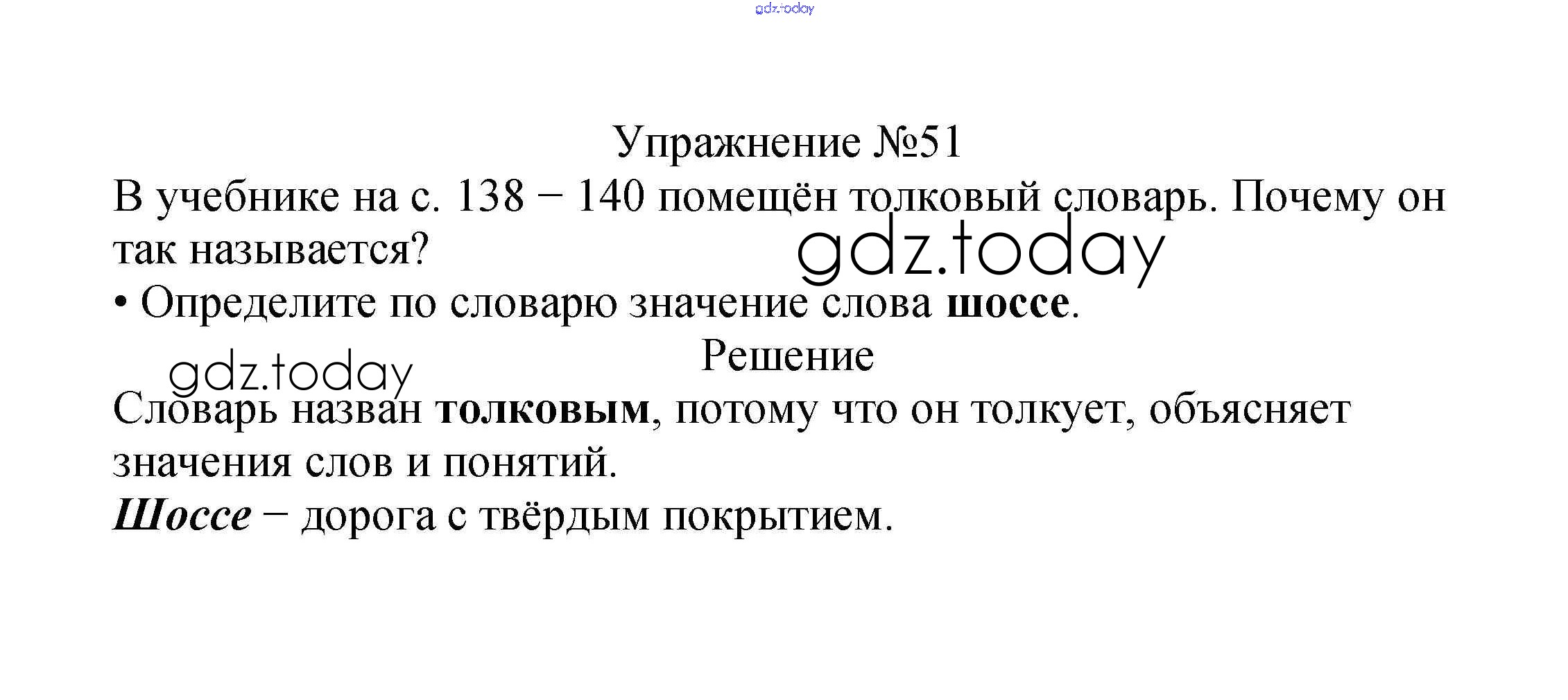 На страницах сайта gdz.today вы найдете учебный и вспомогательный материал, направленный на улучшения знаний школьной программы. ГДЗ - онлайн мир знаний Решение к части №1 (Упражнения) 51 Учебнику по Русскому языку для 2 класса Канакина, Горецкий Просвещение Школа России 2013