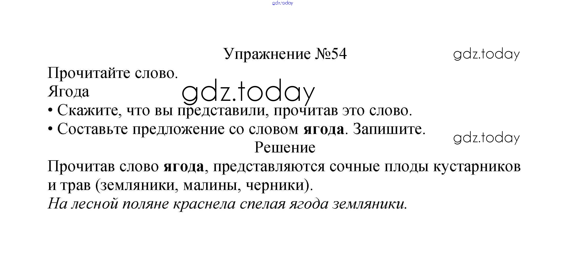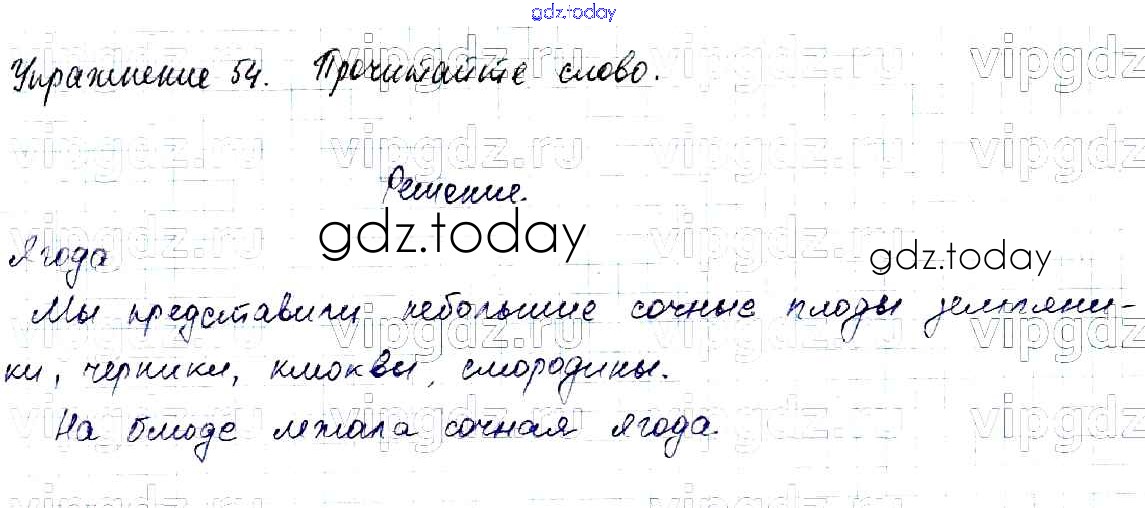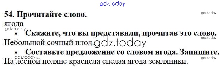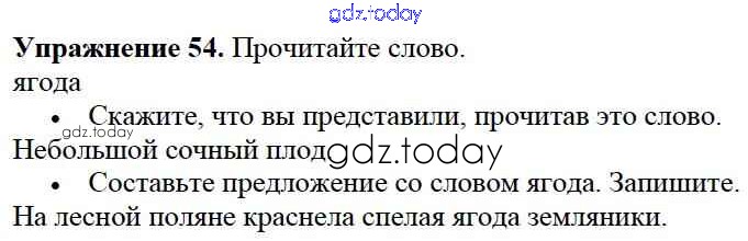 На страницах сайта gdz.today вы найдете учебный и вспомогательный материал, направленный на улучшения знаний школьной программы. ГДЗ - онлайн мир знаний Решение к части №1 (Упражнения) 54 Учебнику по Русскому языку для 2 класса Канакина, Горецкий Просвещение Школа России 2013