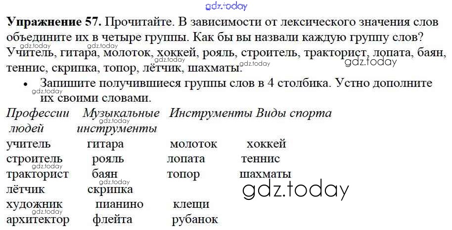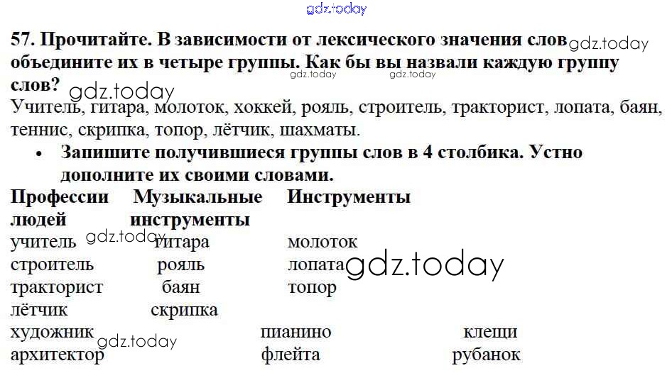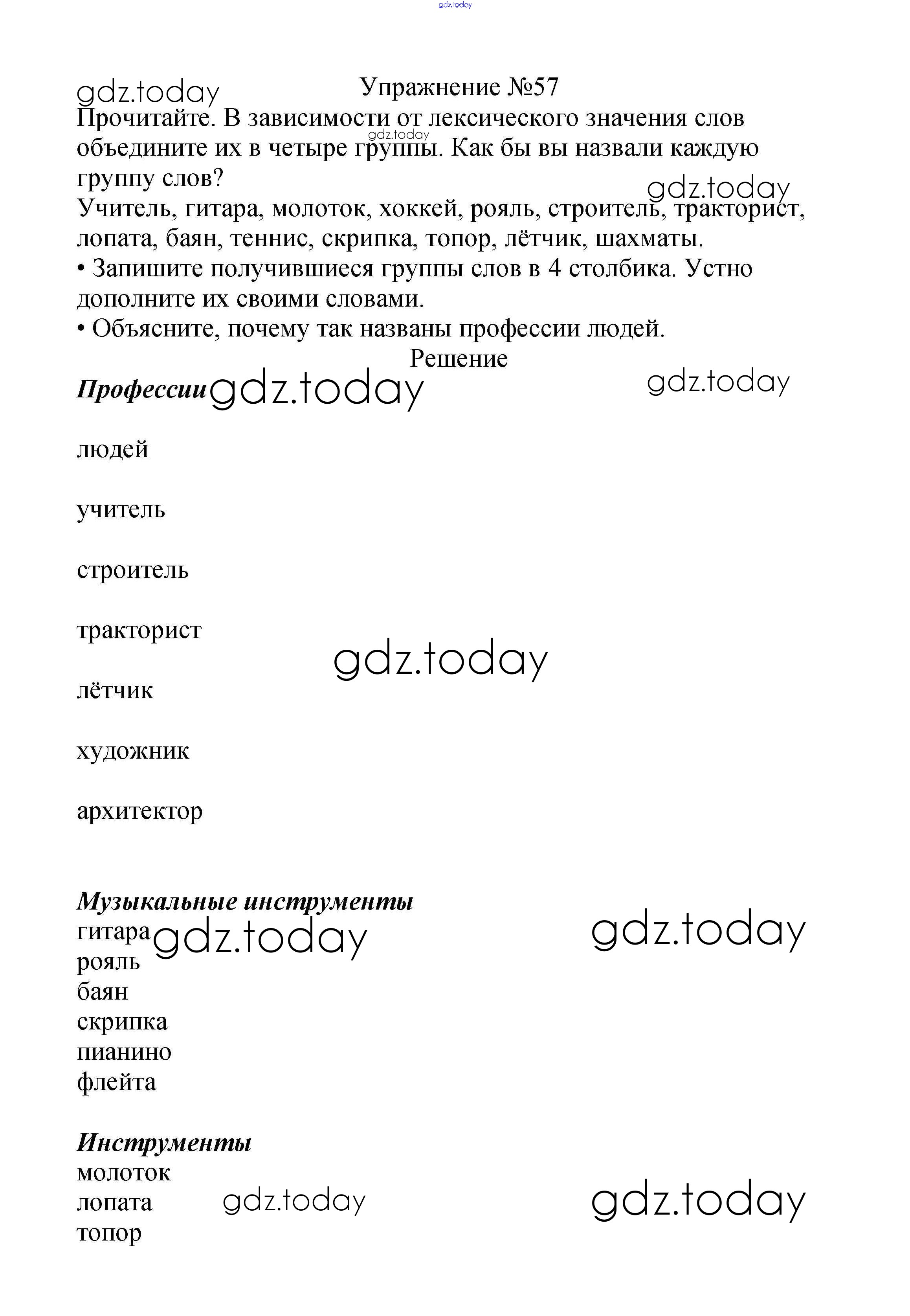 На страницах сайта gdz.today вы найдете учебный и вспомогательный материал, направленный на улучшения знаний школьной программы. ГДЗ - онлайн мир знаний Решение к части №1 (Упражнения) 57 Учебнику по Русскому языку для 2 класса Канакина, Горецкий Просвещение Школа России 2013
