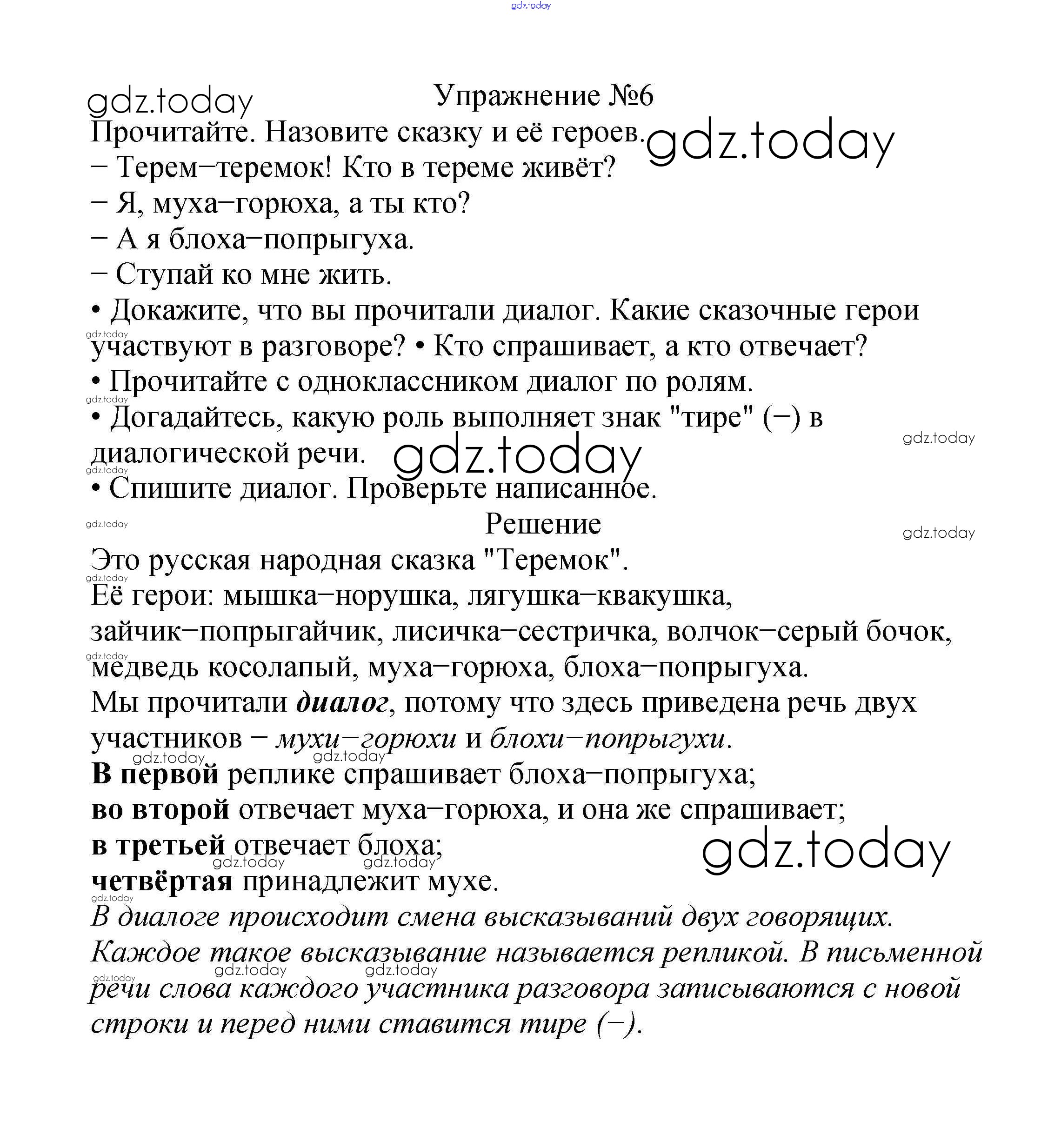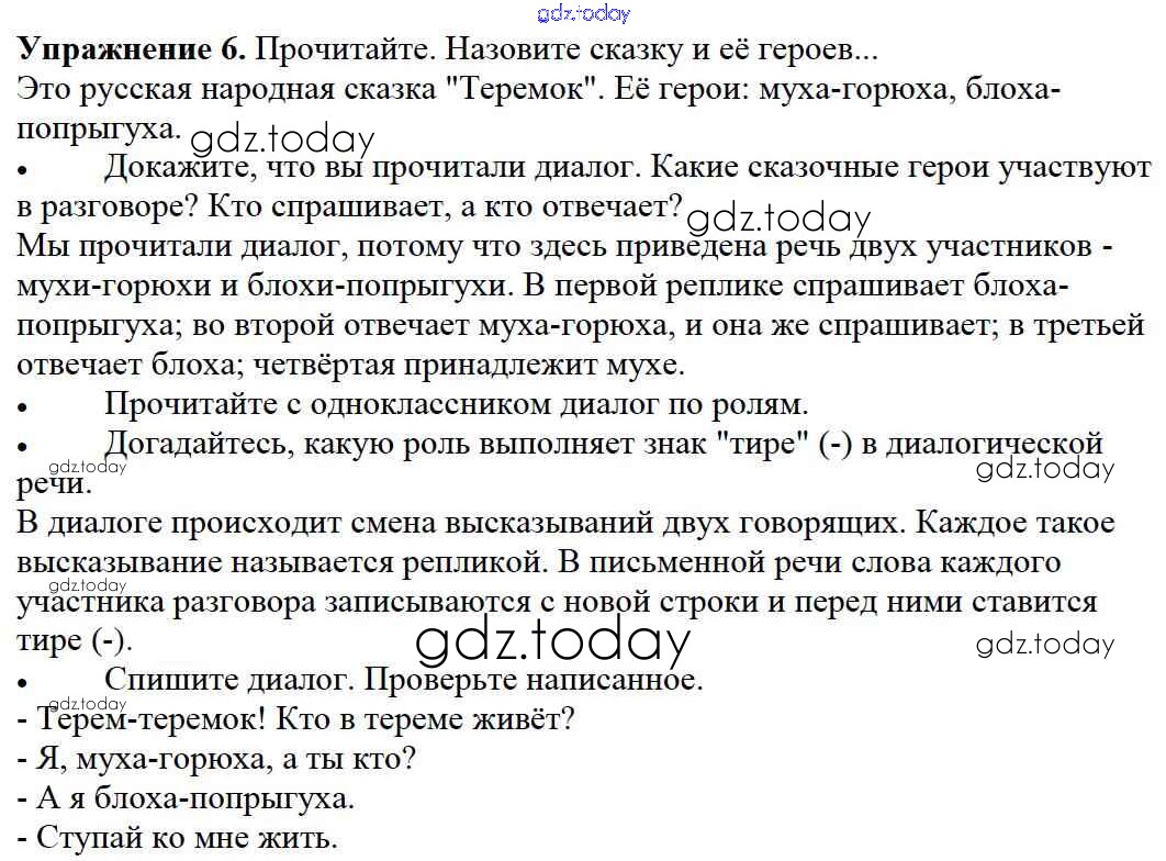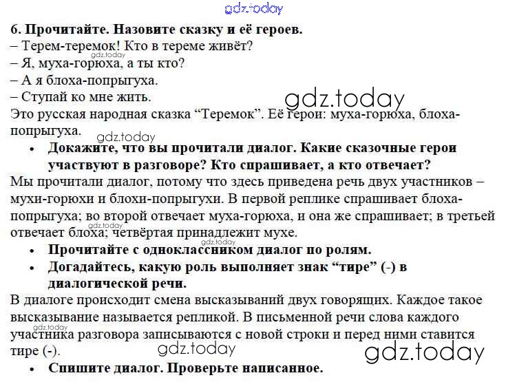 На страницах сайта gdz.today вы найдете учебный и вспомогательный материал, направленный на улучшения знаний школьной программы. ГДЗ - онлайн мир знаний Решение к части №1 (Упражнения) 6 Учебнику по Русскому языку для 2 класса Канакина, Горецкий Просвещение Школа России 2013