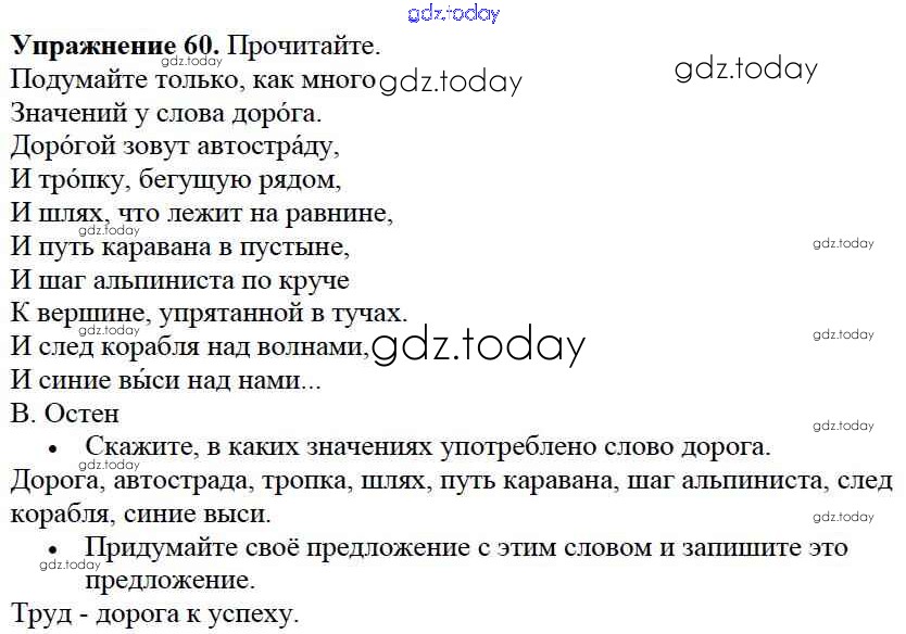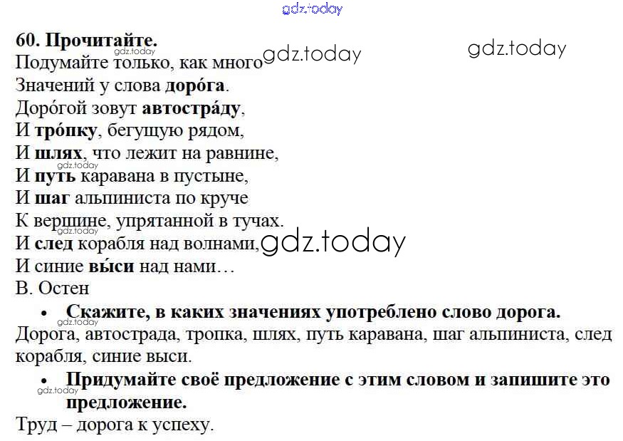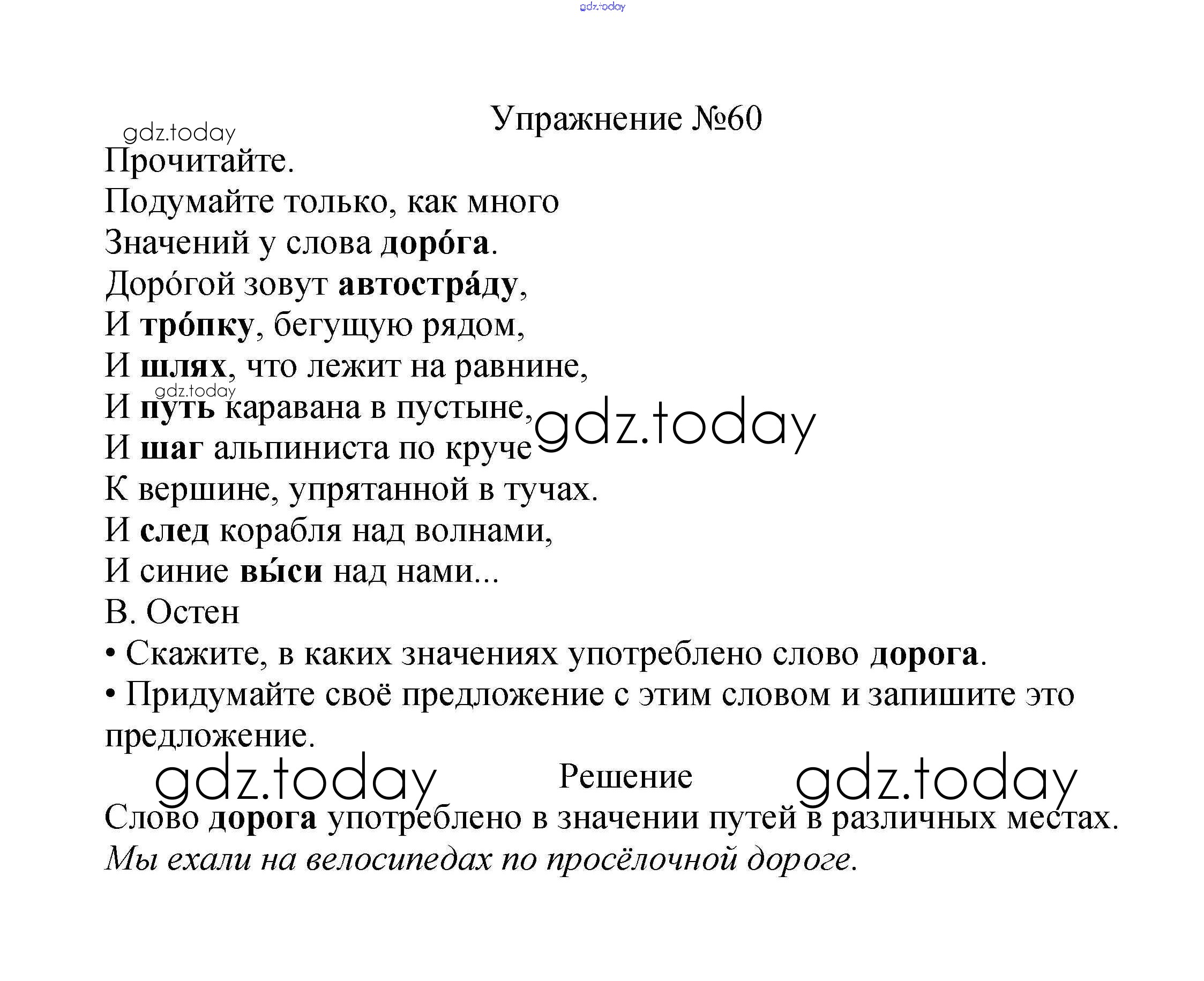 На страницах сайта gdz.today вы найдете учебный и вспомогательный материал, направленный на улучшения знаний школьной программы. ГДЗ - онлайн мир знаний Решение к части №1 (Упражнения) 60 Учебнику по Русскому языку для 2 класса Канакина, Горецкий Просвещение Школа России 2013