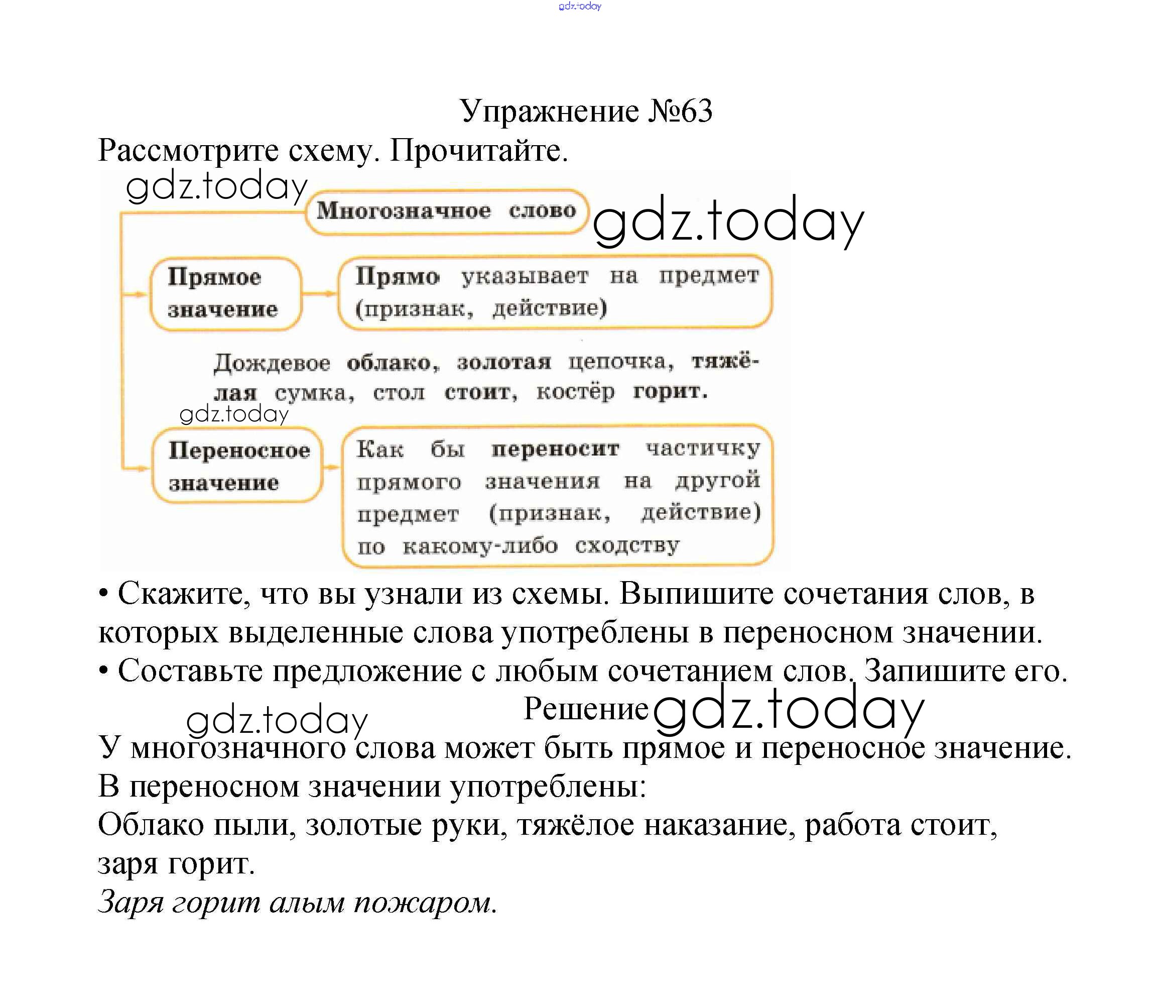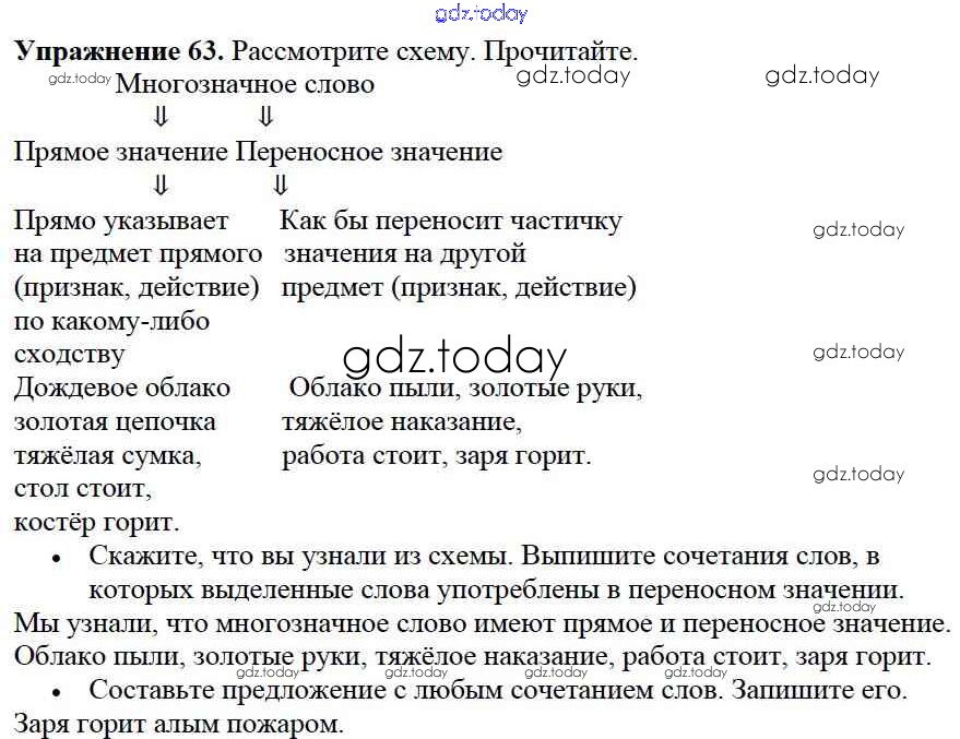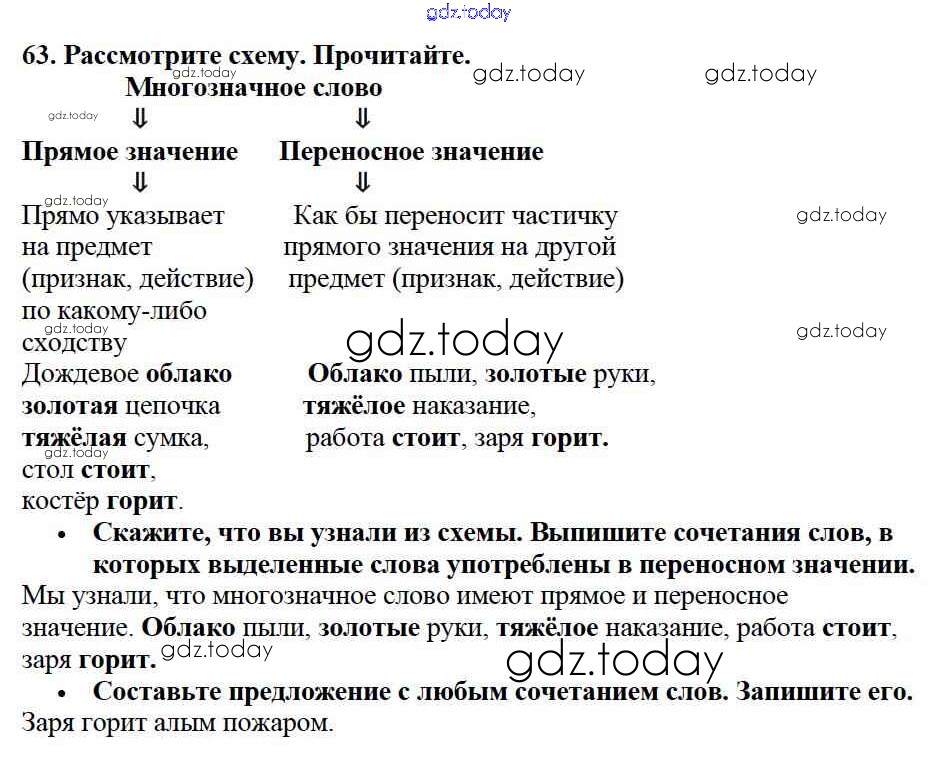 На страницах сайта gdz.today вы найдете учебный и вспомогательный материал, направленный на улучшения знаний школьной программы. ГДЗ - онлайн мир знаний Решение к части №1 (Упражнения) 63 Учебнику по Русскому языку для 2 класса Канакина, Горецкий Просвещение Школа России 2013