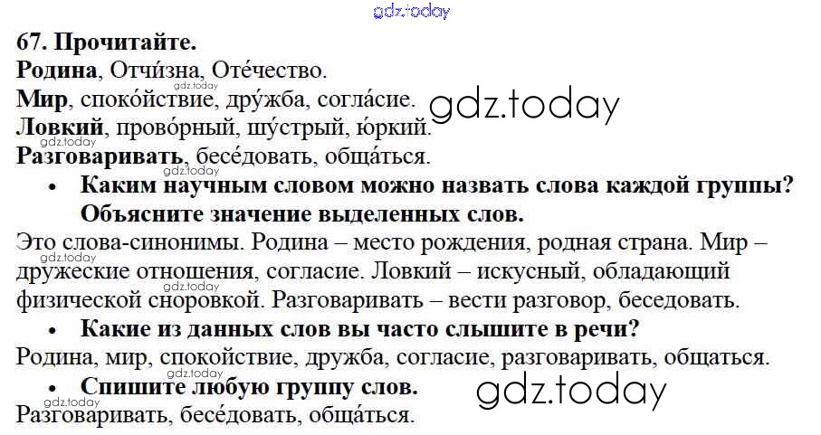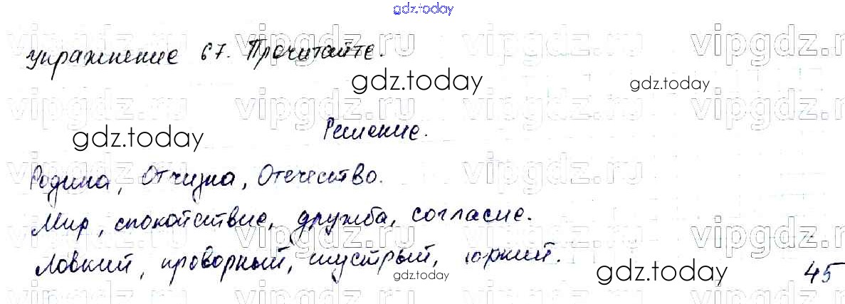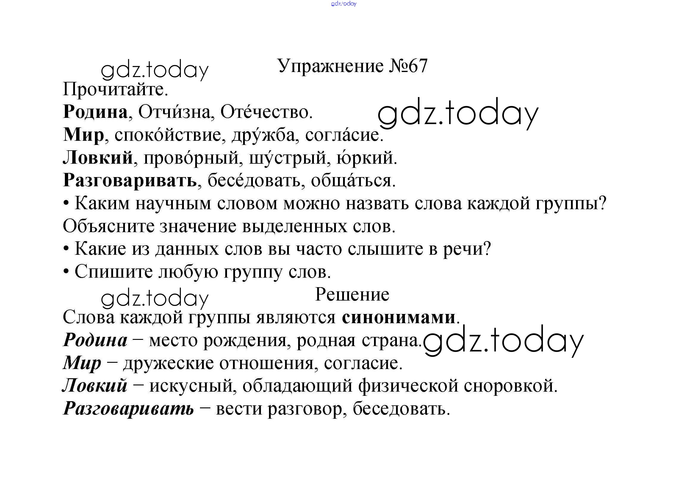 На страницах сайта gdz.today вы найдете учебный и вспомогательный материал, направленный на улучшения знаний школьной программы. ГДЗ - онлайн мир знаний Решение к части №1 (Упражнения) 67 Учебнику по Русскому языку для 2 класса Канакина, Горецкий Просвещение Школа России 2013